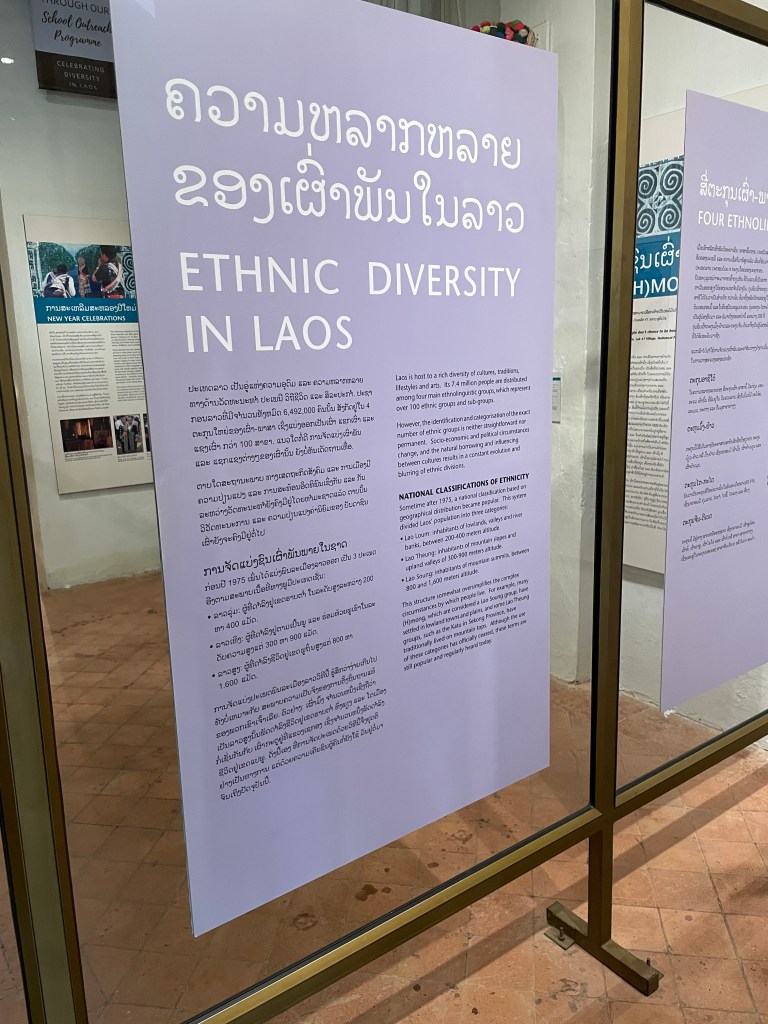 Offisielt består befolkningen i Laos av 49 etniske grupper fordelt i 160 underkategorier. Gruppene er fordelt på fire etno-lingvistiske familier: Lao-Tai (Tai-kadai-språk); Mon-Khmer (Austroasiatiske språk); Hmong-Mien (Hmong-Yao, Miao-Yao); og Sinotibetanske språk (mest Tibeto-Burman). (kilde: Wikipedia)