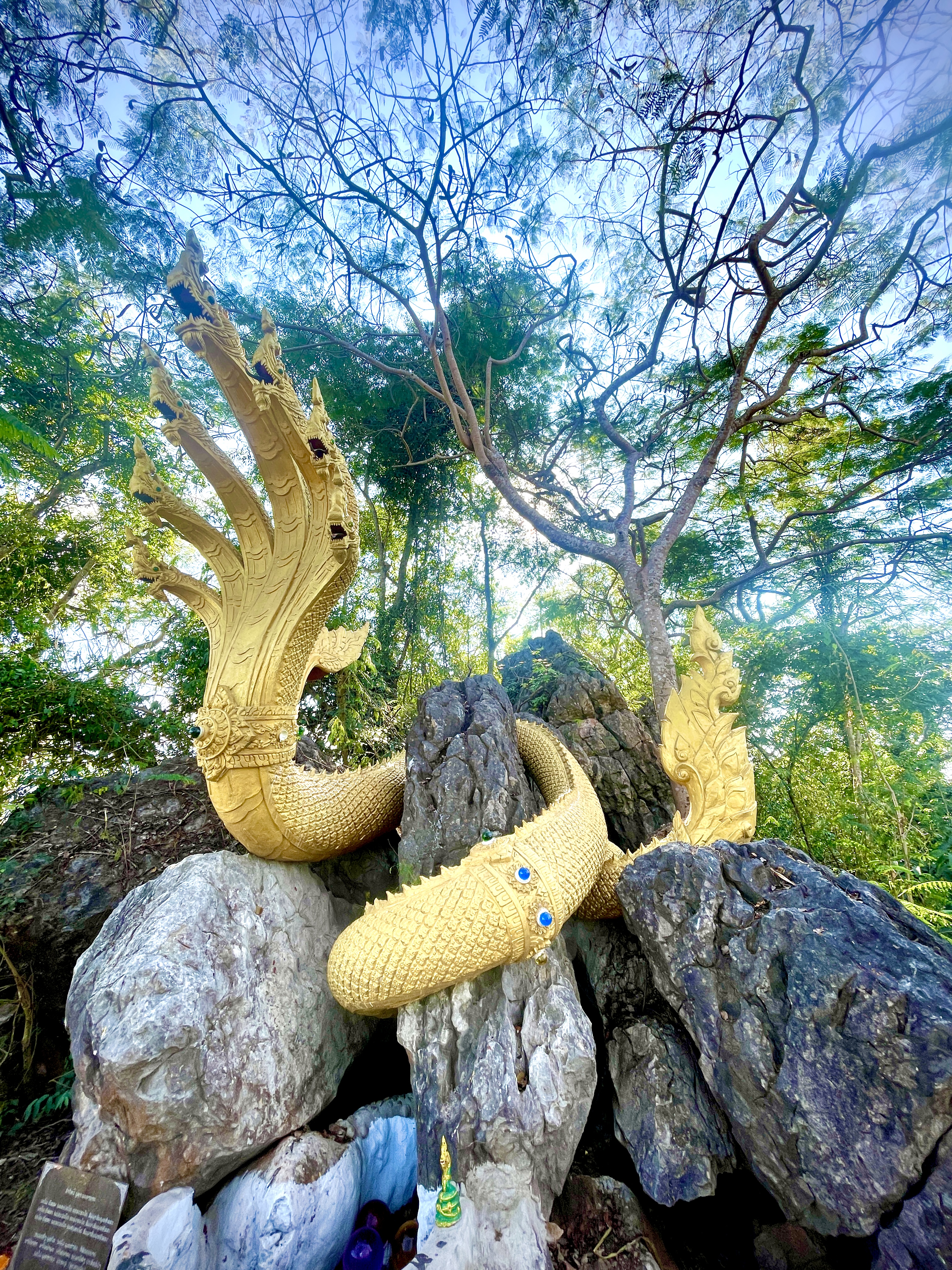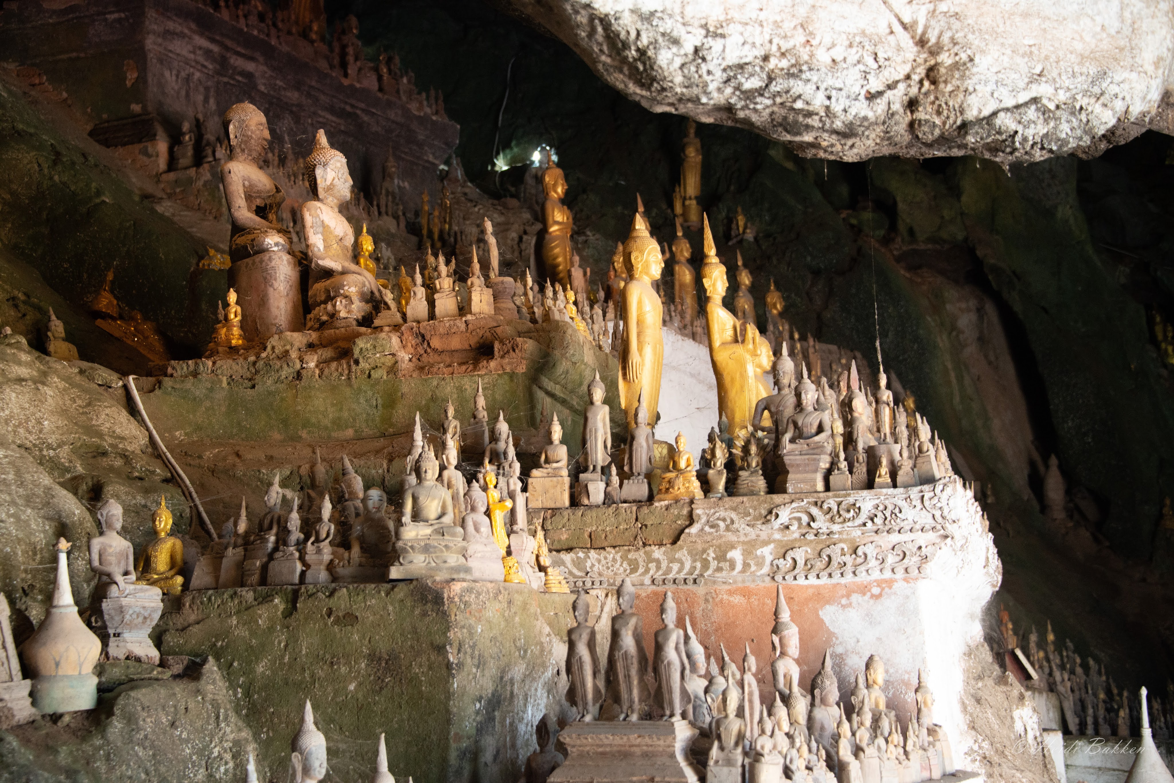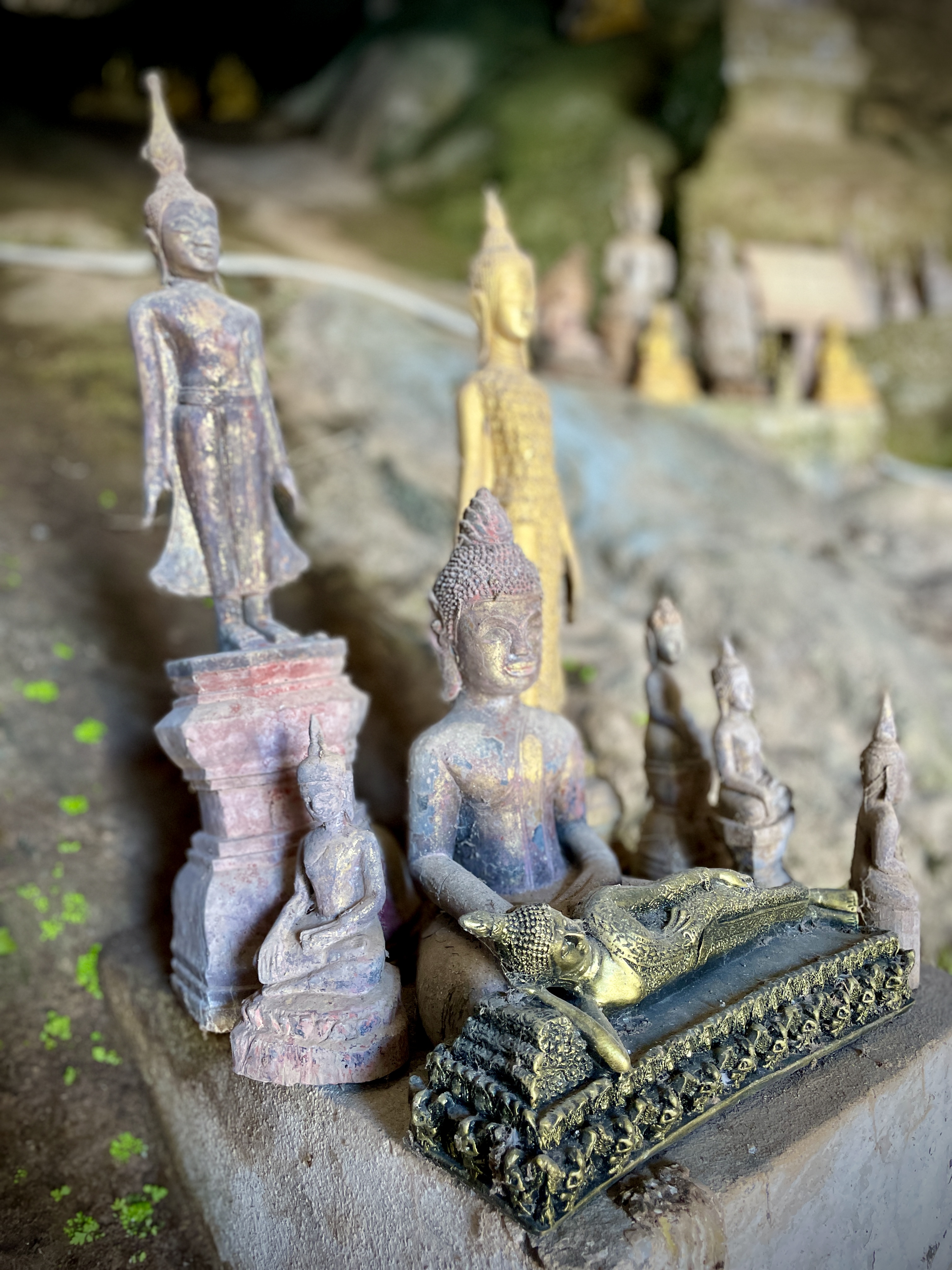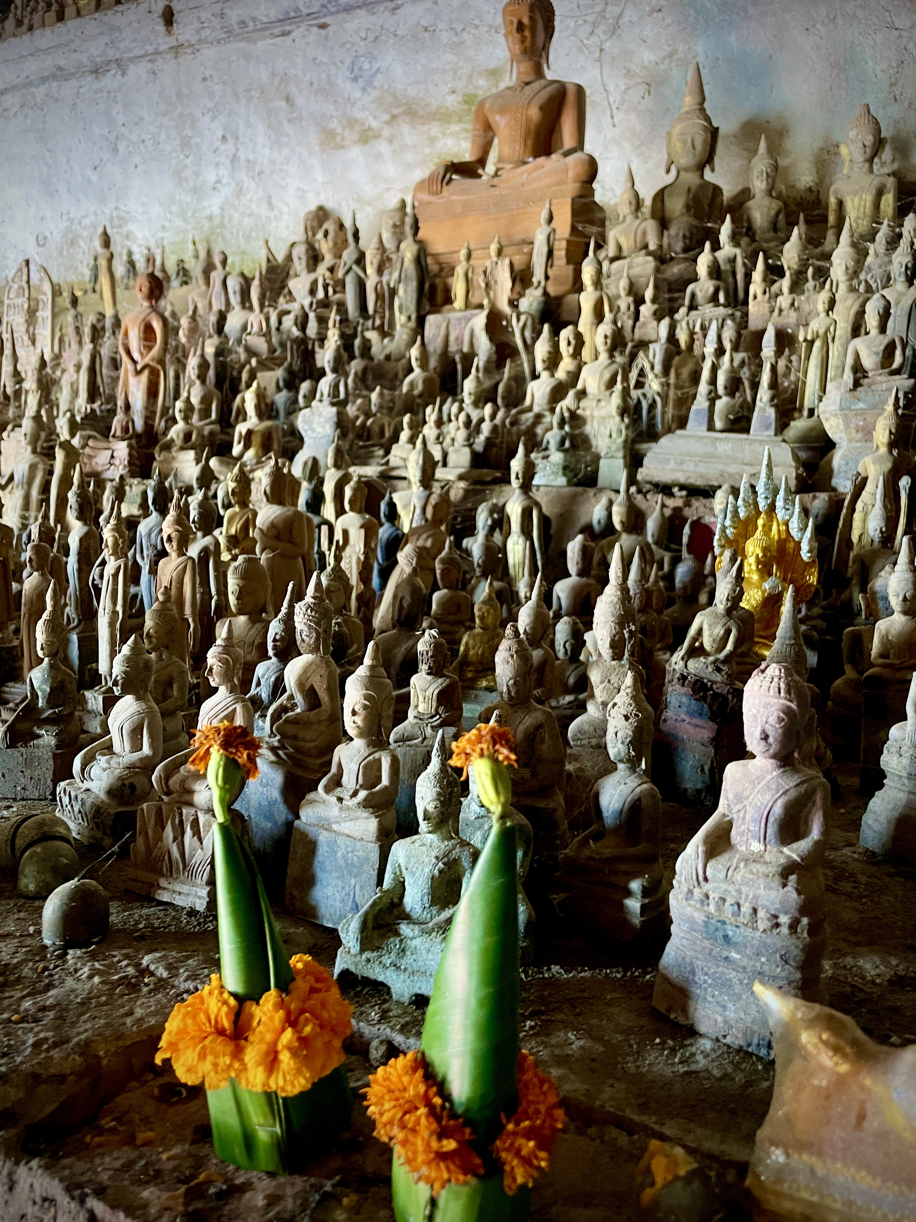En av attraksjonene langst elven har en grotte med enormt mange buddaer. Usikker på antallet, men det var nå uansett fullt og ikke tillatt å sette igjen flere.