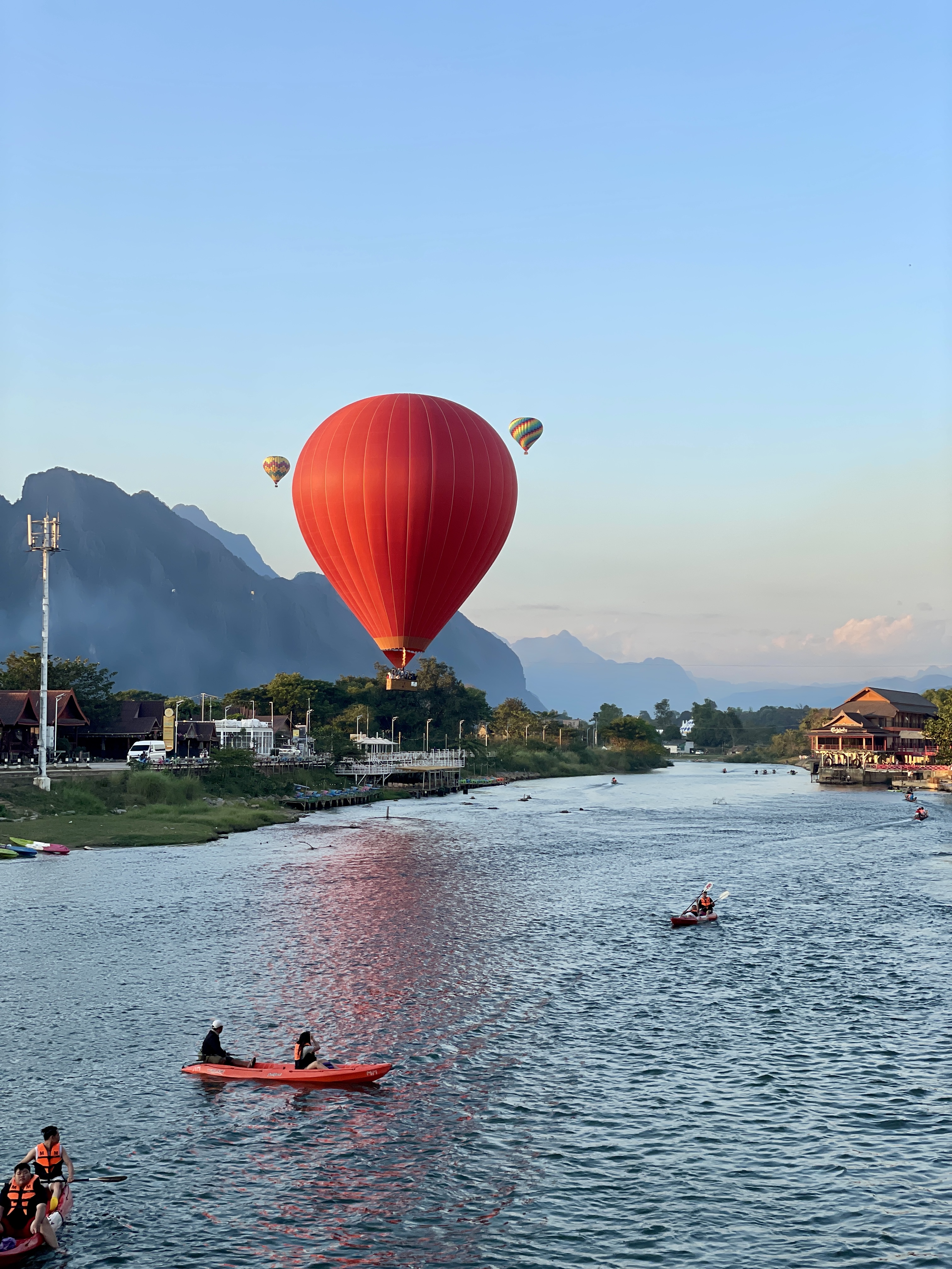 Byen Vang Vieng (laotisk: ວັງ ວຽງ) er spesielt kjent for spektakulær natur og elleville aktiviteter – i tillegg til at den har en historie som tidligere partyhovedstad for backpackere. Som sikkert henger sammen med de elleville aktiviteten. Etter noen litt leie ulykker har byen imidlertid valgt å sikte markedsføringen inn mot litt mer tryggere og mer bærekraftig turisme. Det er blant annet ikke lenger mulig å seile nedover elven i en bilring med en drink i hånden. Sikkert like greit.