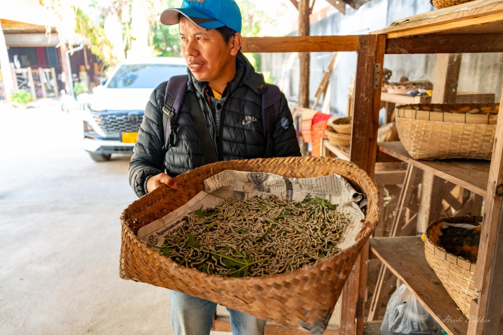 Vi fikk også hilse på silkeormer, som dessverre var litt småkalde og ikke helt i form stakkars.