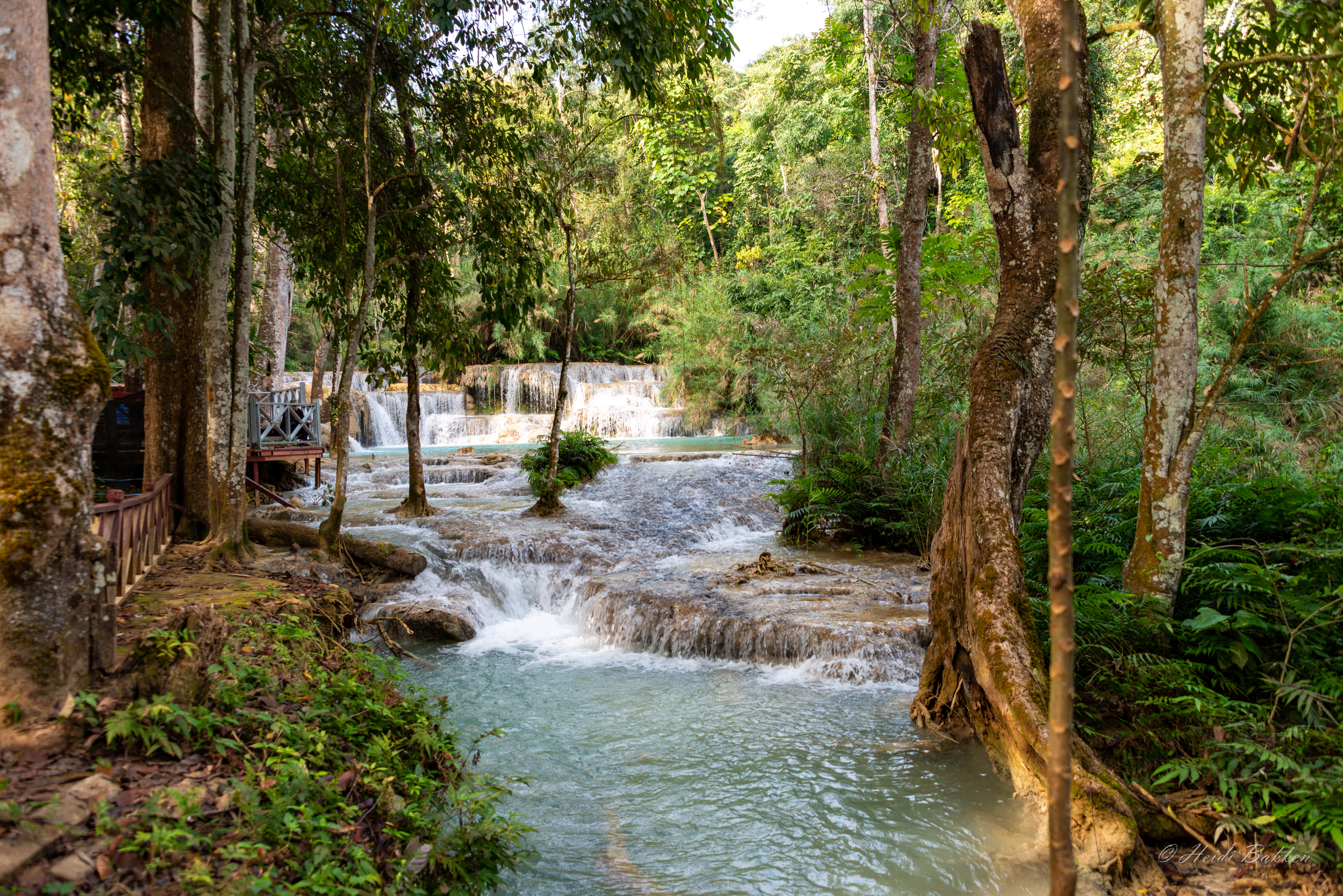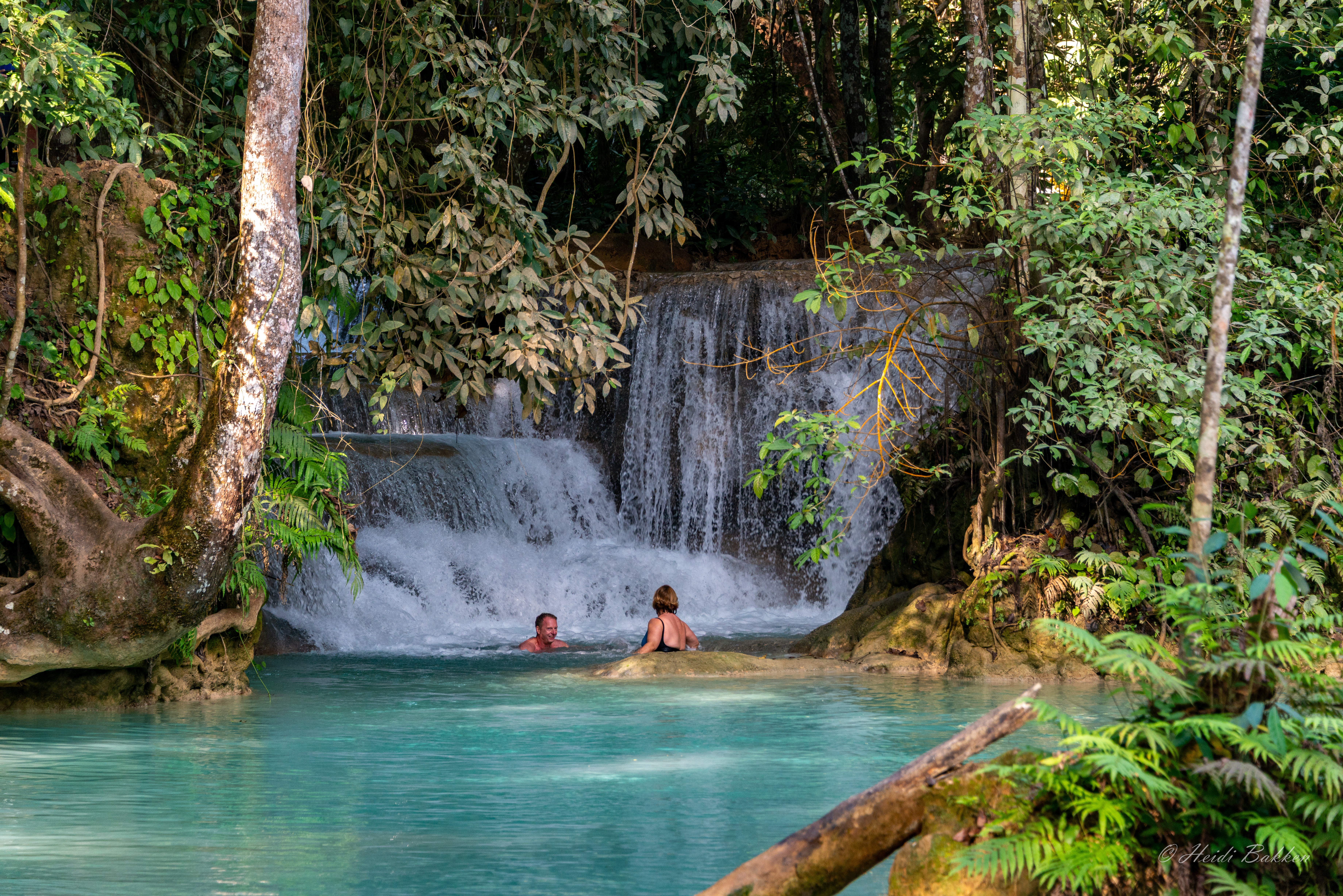 Vi hadde fått hjelp av Kilroy til å planlegge deler av reisen vår til Laos. Av aktivitetene de foreslo var et besøk til et flott fossefall. Her var det også et senter for omplassering av bjørner; Moon bears og Sun bears.
