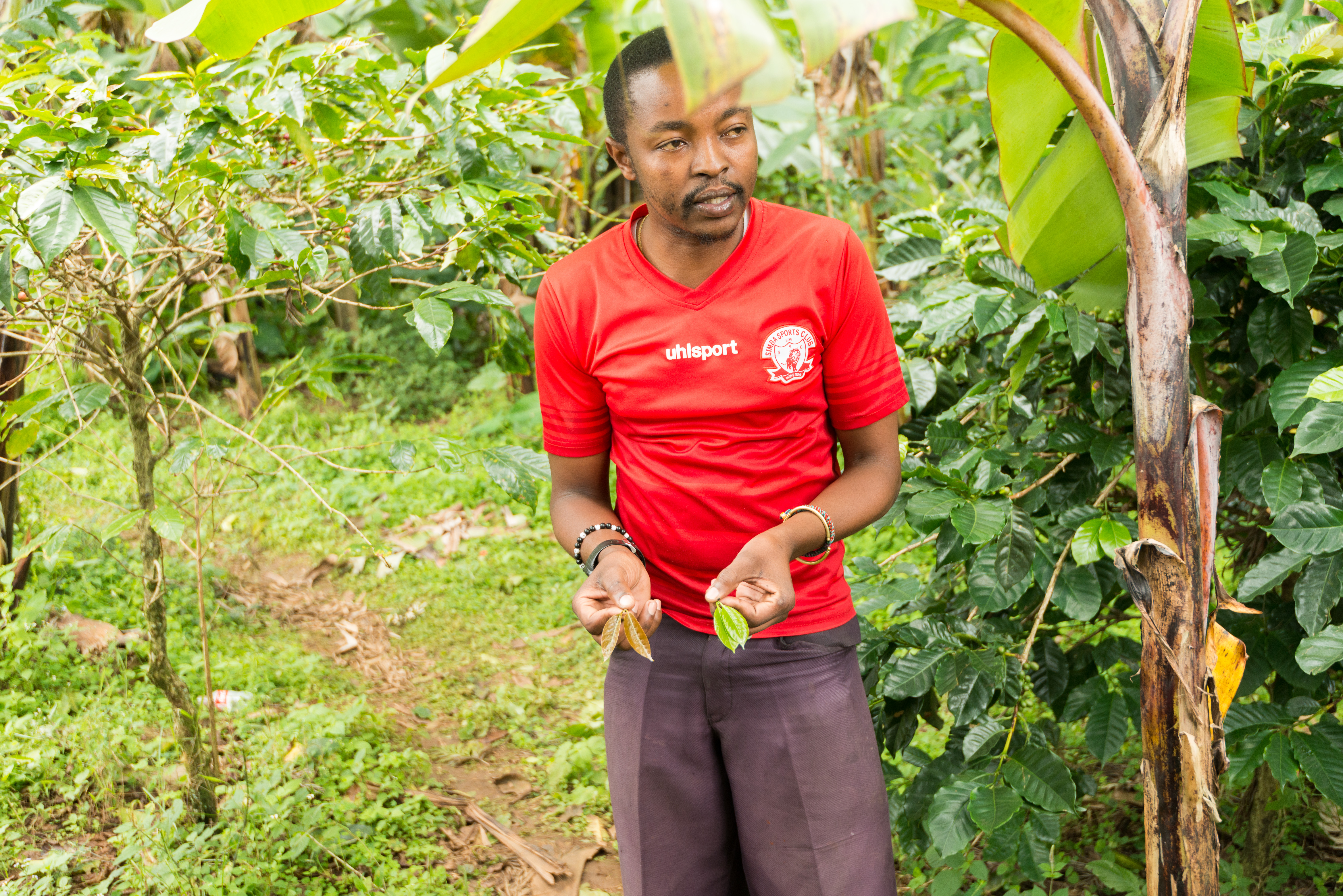 _LOC0236 23. juli 2018 7360 × 4912 Reise, kaffe og en dusj i friluft Oscar viser forskjellen på bladene fra den origianale Arabica planten og en hybrid
