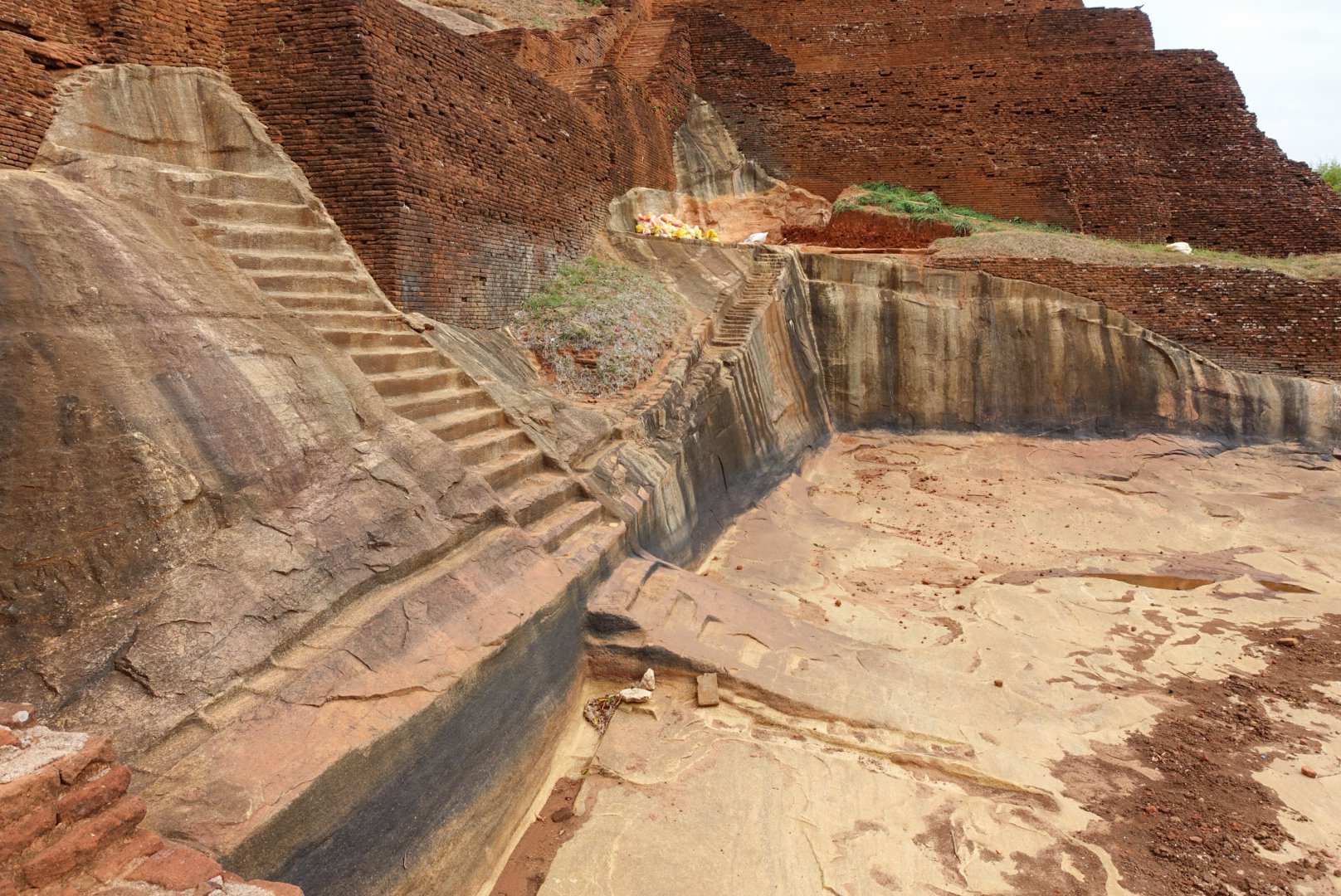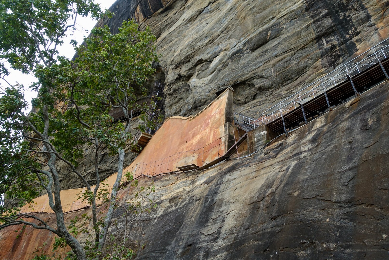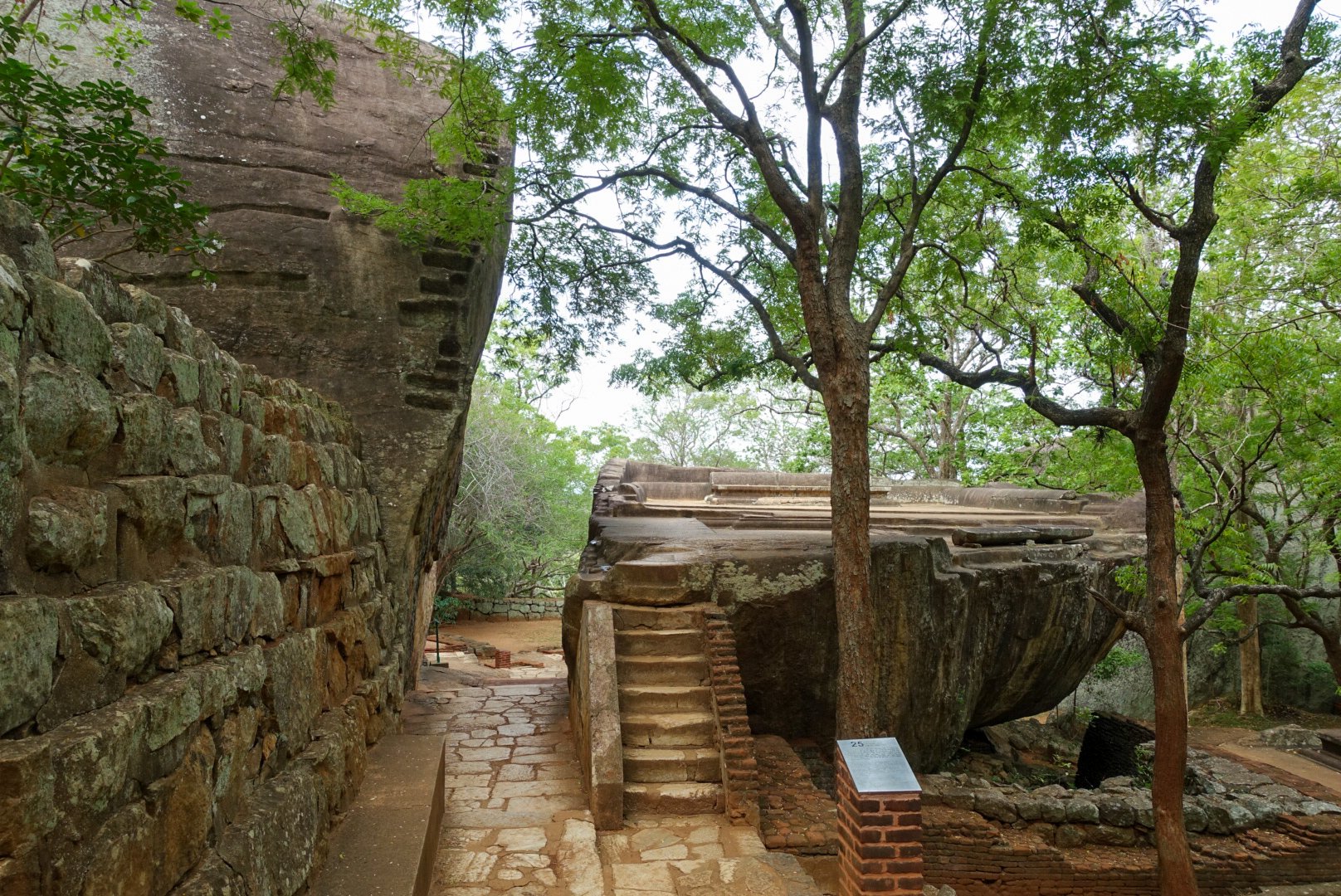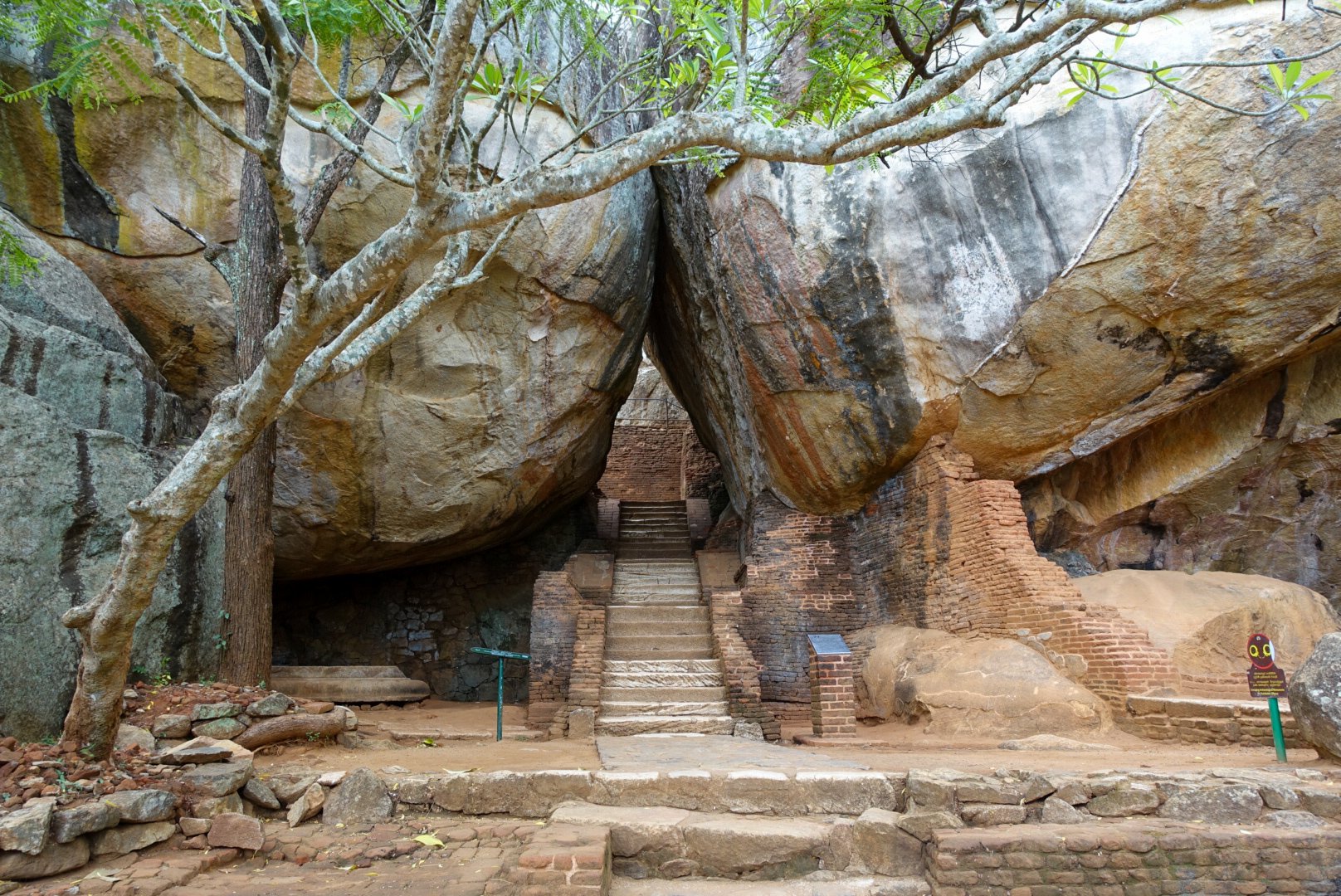 Den gamle festningen i Sigiriya befinner seg på toppen av en gigantisk stein av gneis som rager 200 meter over landskapet rundt.