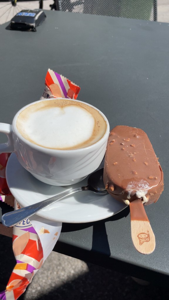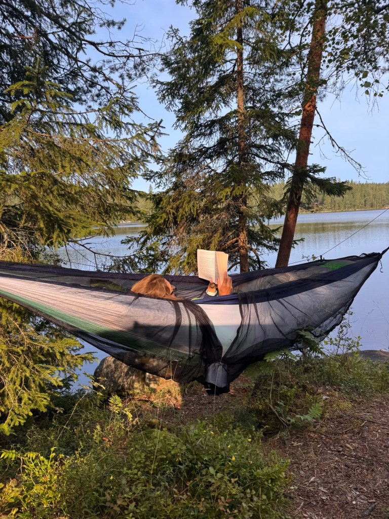 Morgenen opprant med sol, kaffe, kanelbolle, masse smuler i soveposen og lesing av bok i køya.