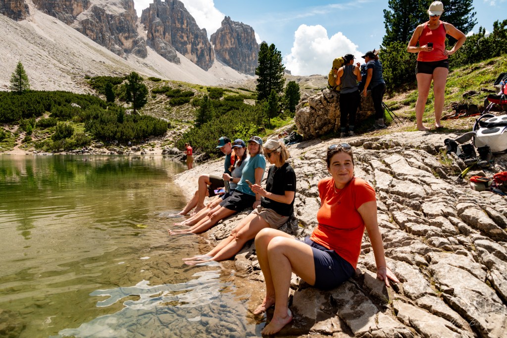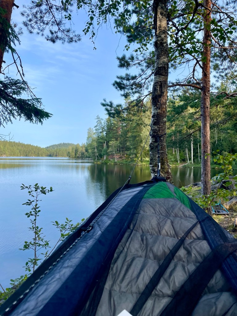 Etter noen minutter ankom vi Tonevann. Denne leirplassen ble godkjent med akklamasjon. Hilde smilte igjen og fikk en ny letthet i steget. Lutvann kunne bare gå og legge seg. Ved Tonevann var det sol, åpent, svaberg ned til vannet, som vi snart skulle bade i, det var etablert bålplass, her ville vi få kveldssol og det var trær med passe avstand til hengekøyene. Lykke!