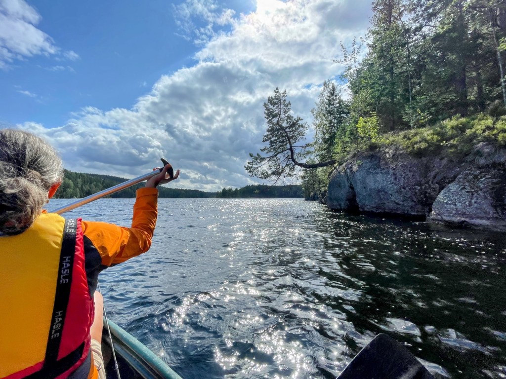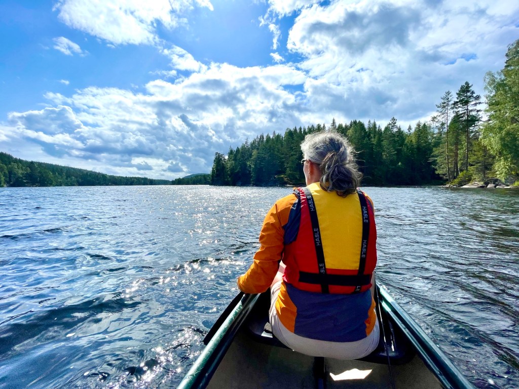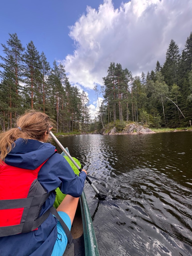 Padlingen gikk det så som så med. Vi vinglet til høyre, vi vinglet til venstre, båten la seg på tvers av vinden og ingen av oss skjønte hva vi gjorde feil. Det ser jo så enkelt ut å padle kano! Det besluttet at vi før hjemturen måtte google riktig padleteknikk.