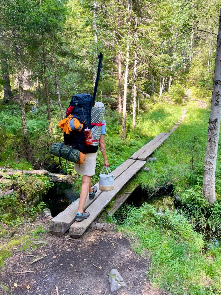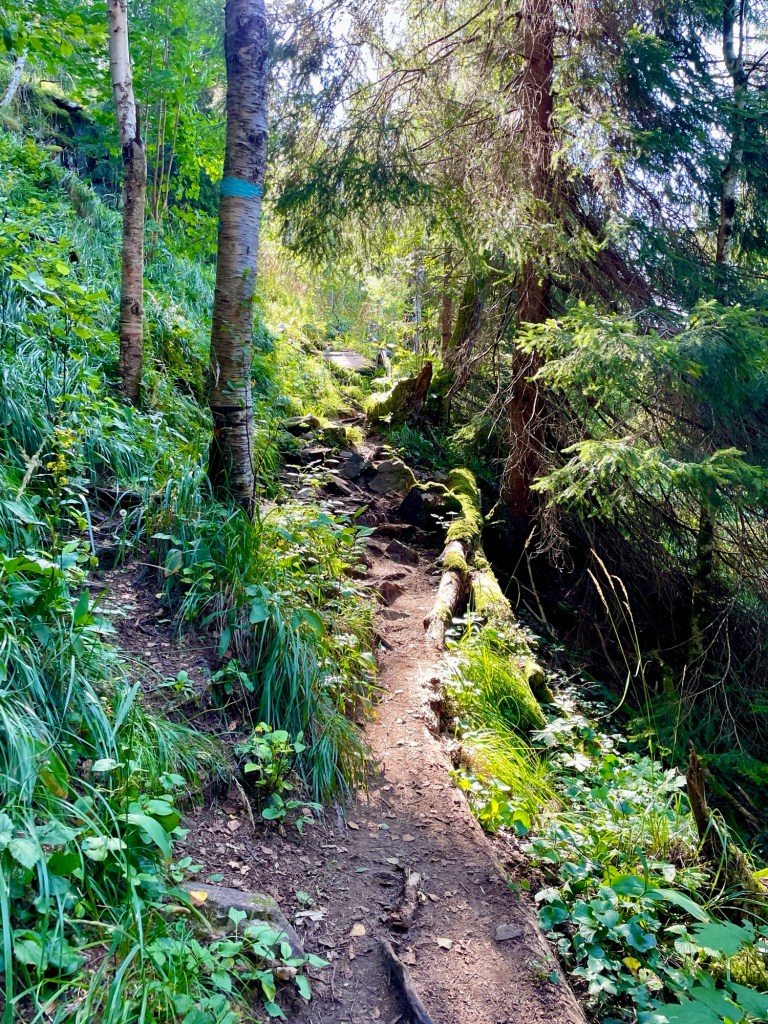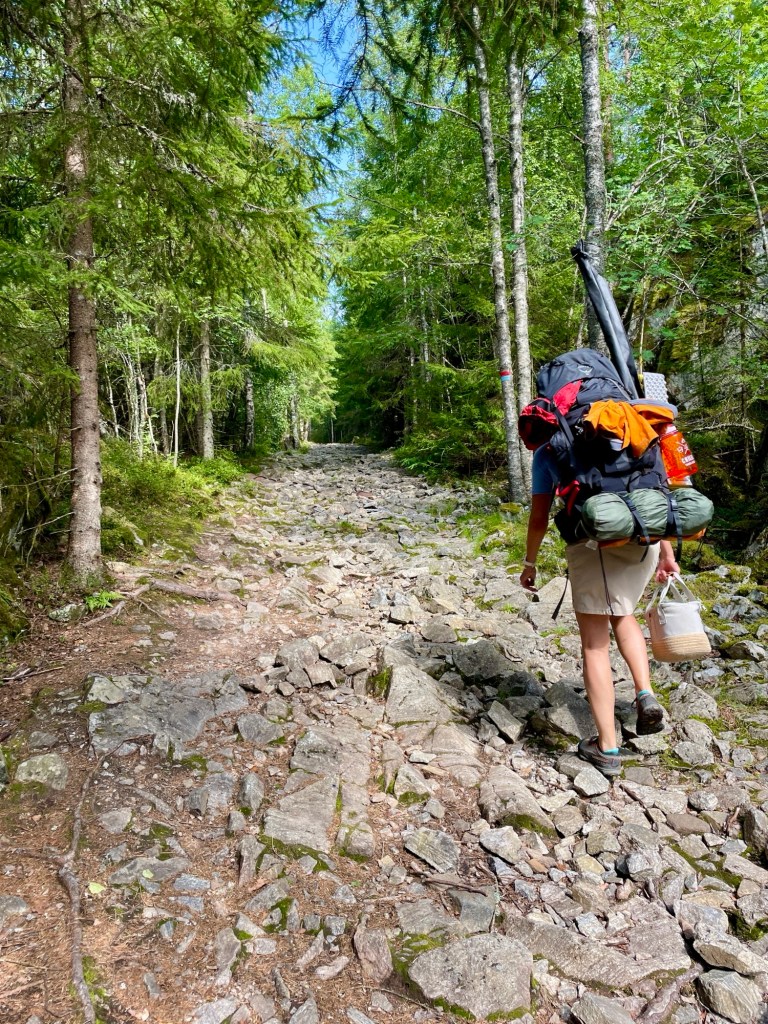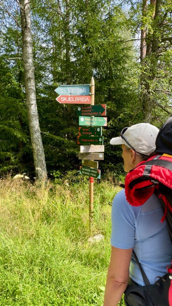 Herfra gikk vi sti innover i frodig skog til Vangen hvor vi leide kano. Så langt alt vel.