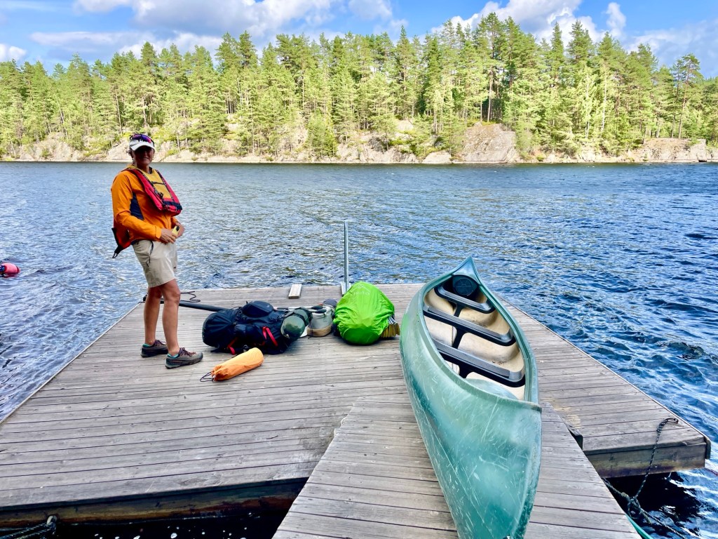 Plasserte bagasjen ombord, lurte litt på om det kunne være sånn at en kano hadde en front og en akterende, eller om den faktisk var helt lik i begge ender. Fant ikke ut av det og besluttet at det nok ikke hadde så mye å si.