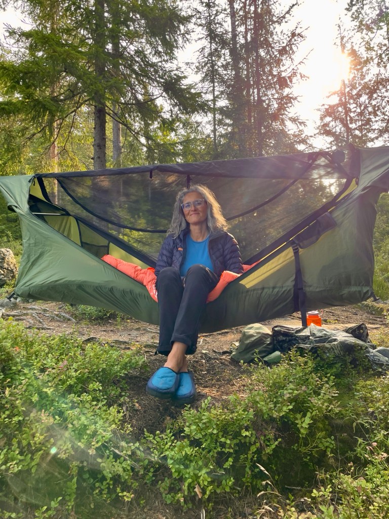 Senere på kvelden kom disse gutta tilbake. Gutta – vel gift alle tre – lurte på om det kunne stemme at vi var single? Javel svarte vi – hva avslørte oss? Jo, de hadde en teori om at det kun var single damer – eller damer i skrantende forhold – som dro på hengekøyetur. Vi lurte på vår side på om gutta selv var uten damer på hyttetur fordi alt var strålende på hjemmefronten? Diskusjonen endte der.