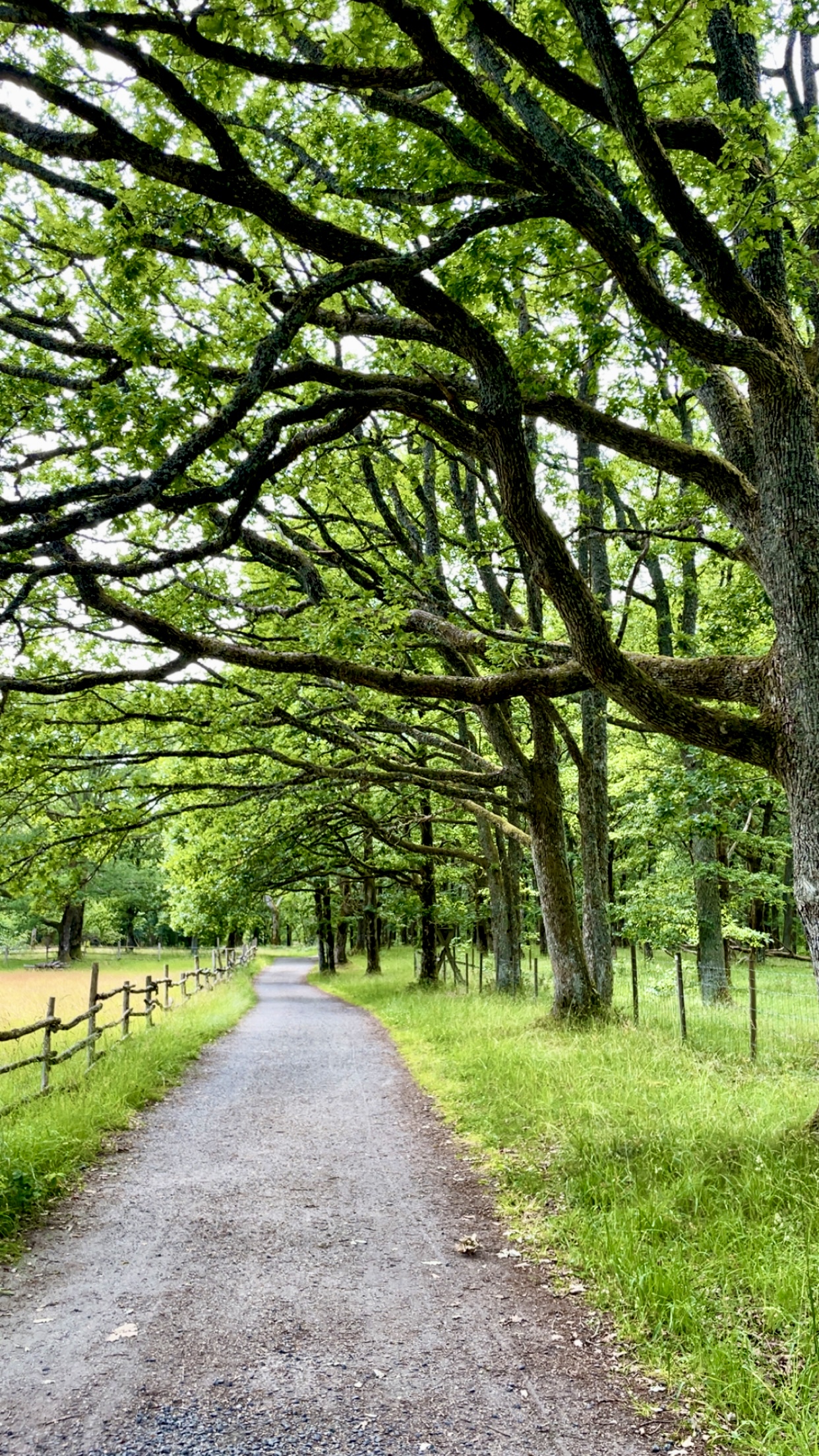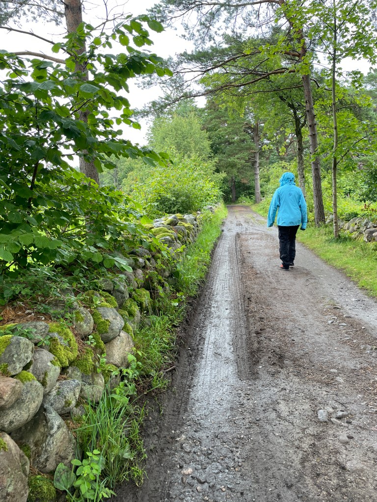 Etter avlevering av kano og årer gikk vi grusveien fra Vangen til parkeringsplassen.