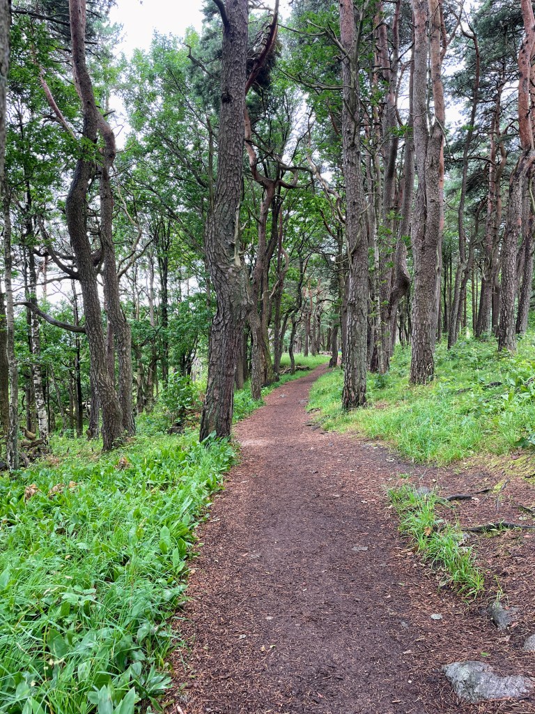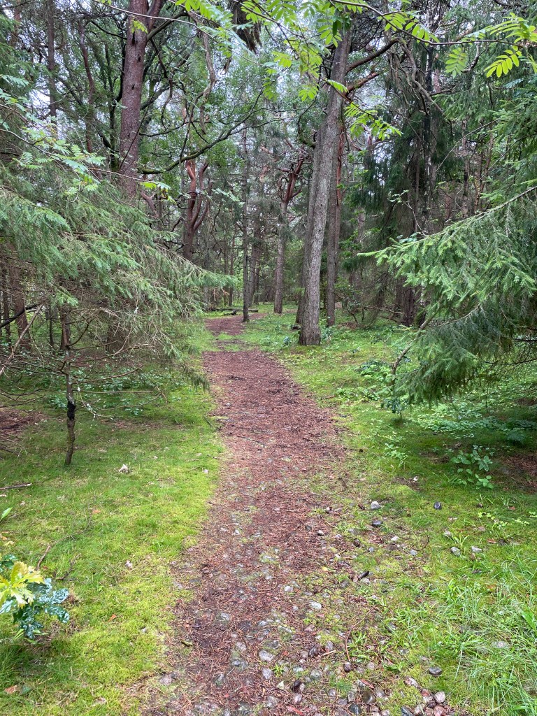 Herfra gikk vi sti innover i frodig skog til Vangen hvor vi leide kano. Så langt alt vel.