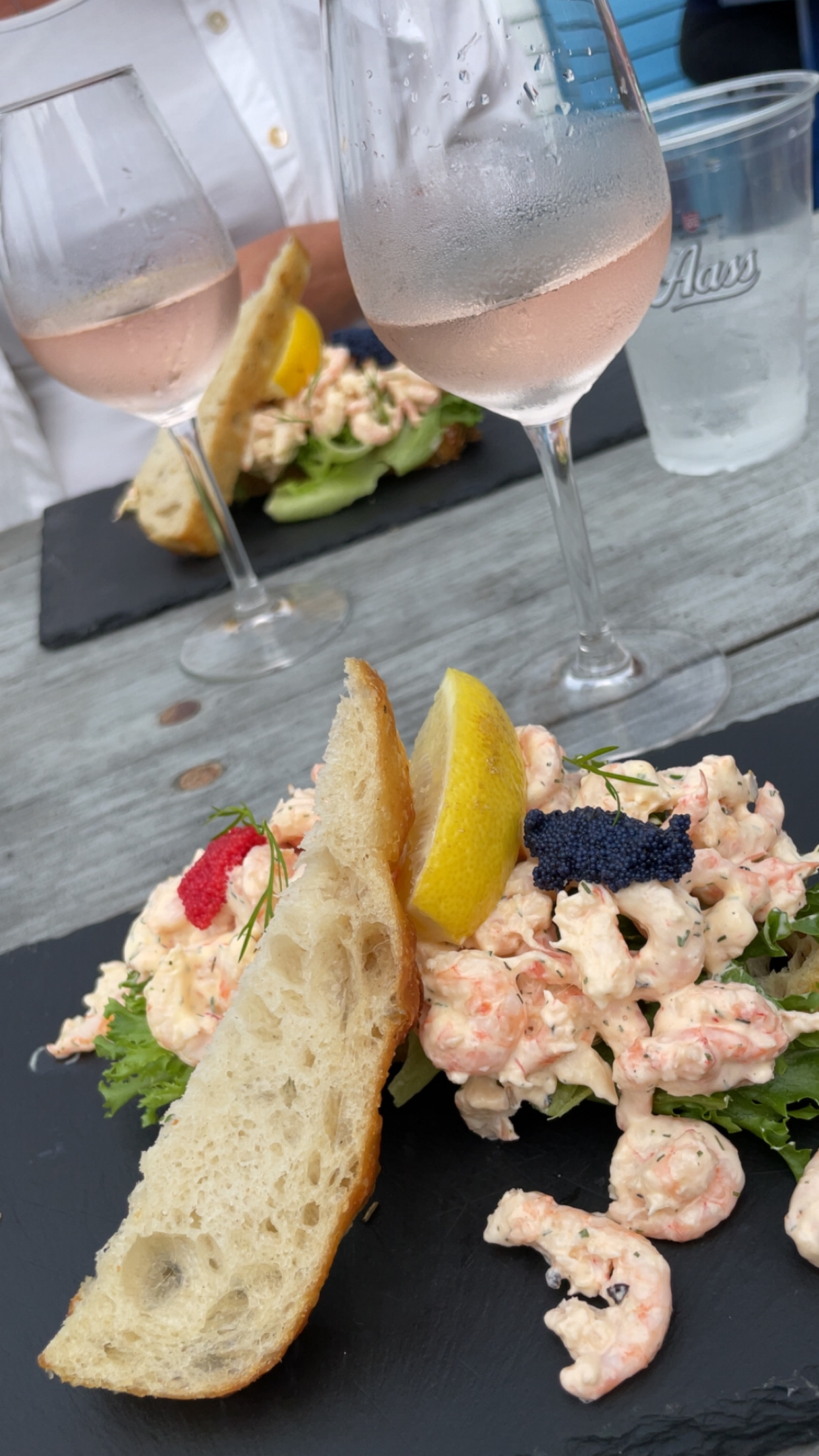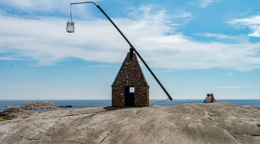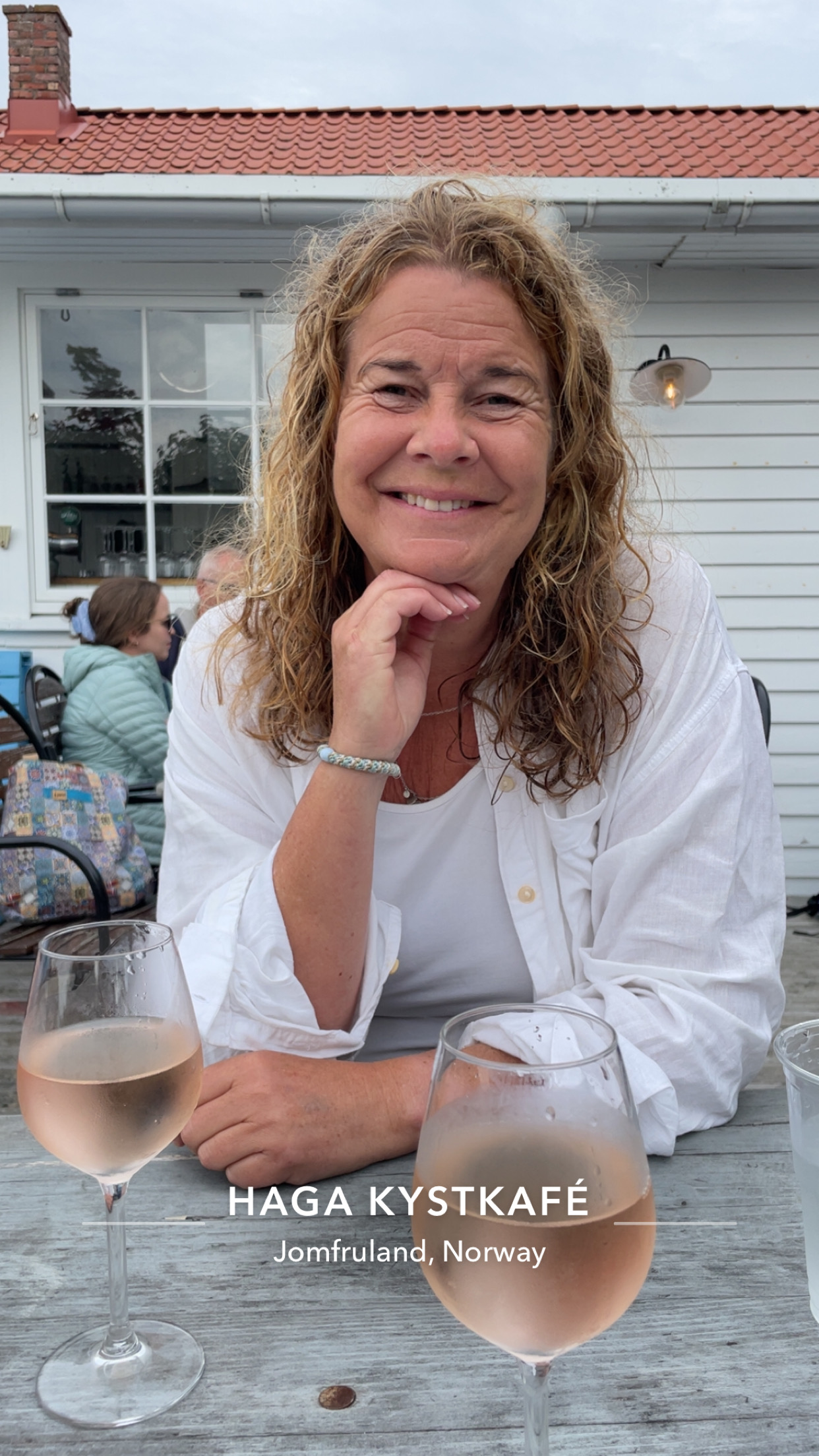 Mindre vin i flasken betyr mindre tyngde og mer luft og heisann – vinen ser sitt snitt til en tur. Kvelden lakker og lir og det kommer tre menn forbi på sup og i kajakker. De lurer på om vi tilfeldigvis kanskje mangler en flaske vin? Tror du ikke at flasken hadde stukket av igjen – og denne gangen var den nesten på vei ned bekken til Mosjøen. Gutta var galante. Tilbød seg å hente den til oss og fortalte samtidig at de hadde badestamp på andre siden av vannet.