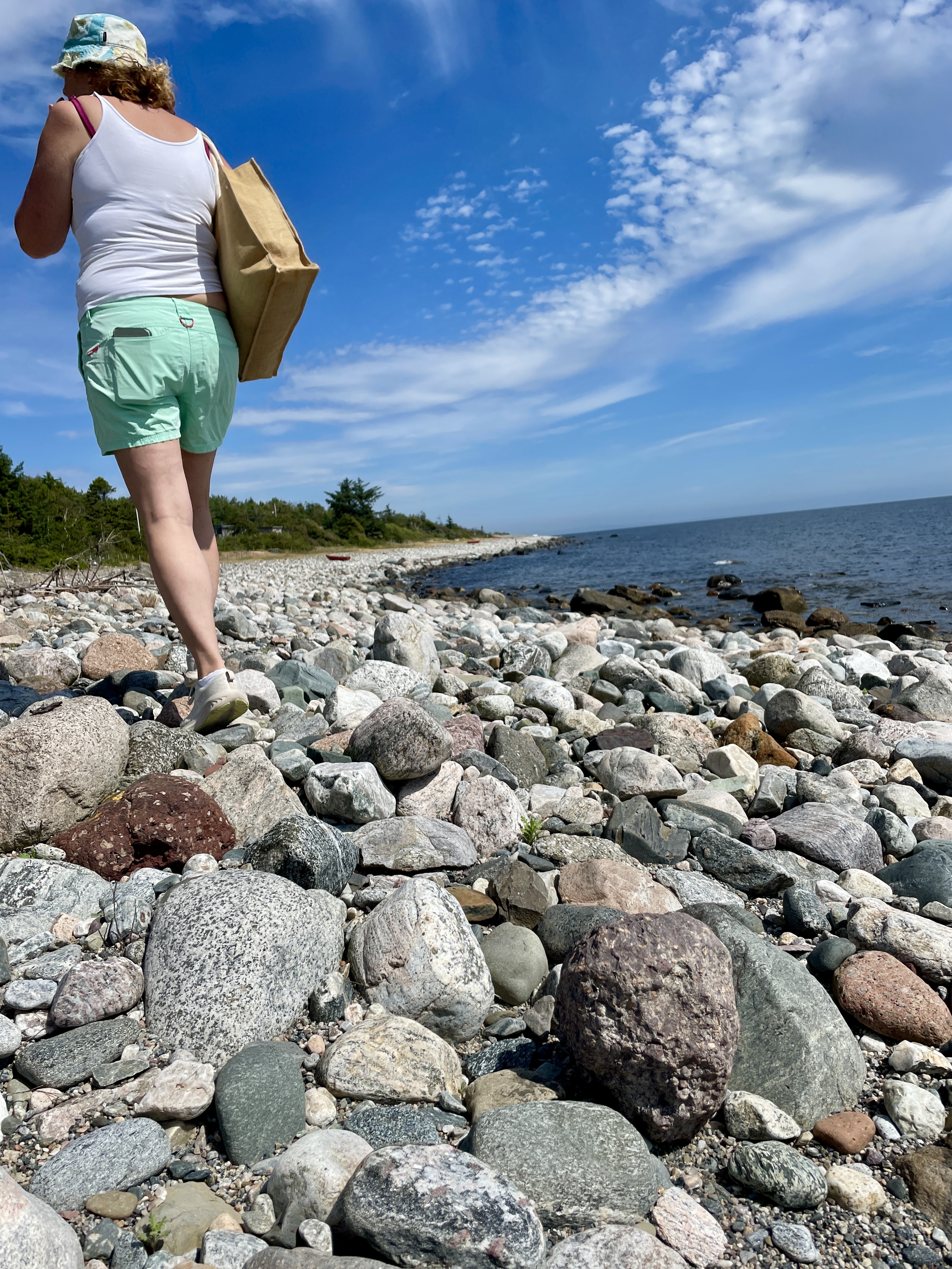 Det var litt pent der synes jeg. Stillere enn ute på Mosjøen, mye skog tett ned til vannet, noen høye klipper, et par steder man kunne se for seg at man kunne campe. Jeg pekte og foreslo steder vi kunne slå leir, men jeg kjenner Hilde så godt at jeg fort skjønte at denne verden ikke stod til forventningene. Hilde var skuffet. Vi måtte videre. Ingen tvil om det. Vi fikk humpet oss gjennom sundet igjen og fortsatte nordover til enden av Mosjøen. Der dro vi kanoen på land og gikk for å utforske.