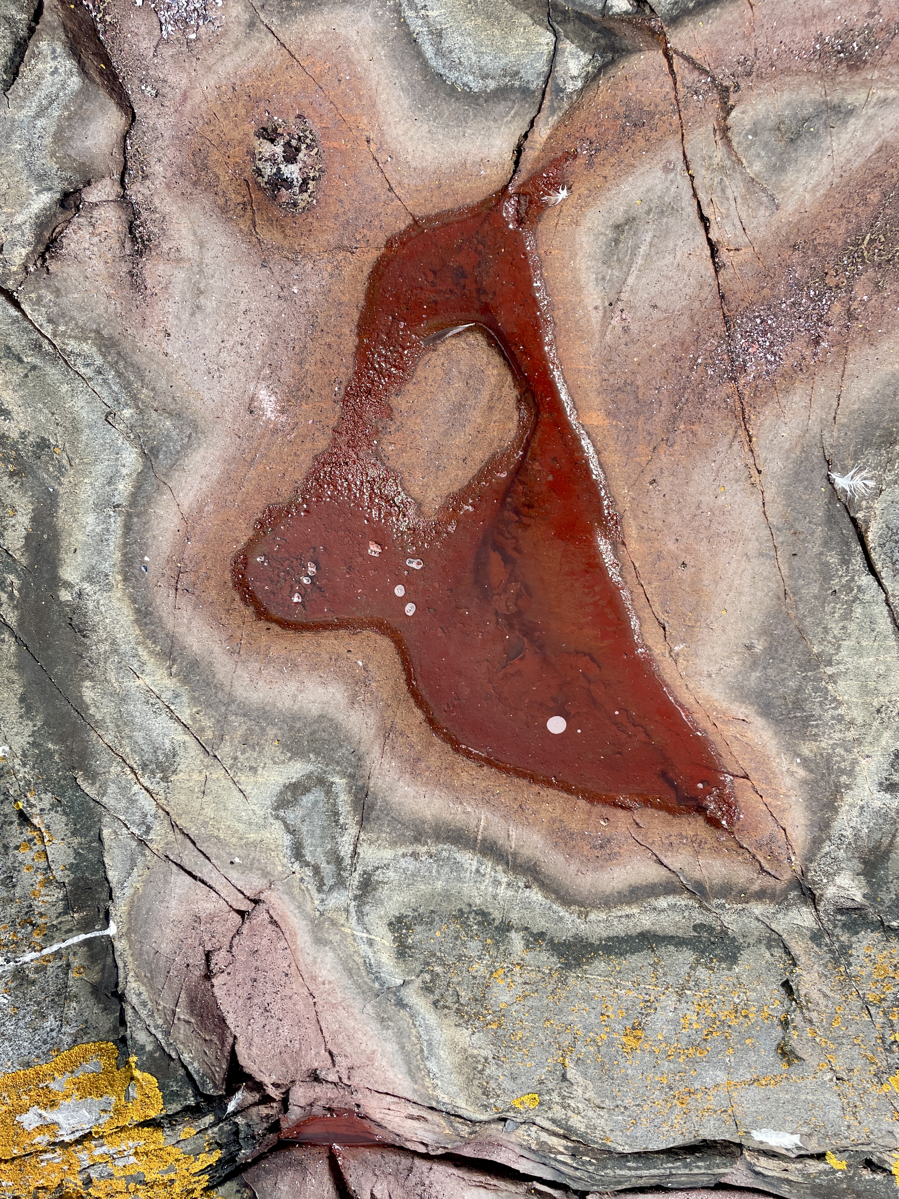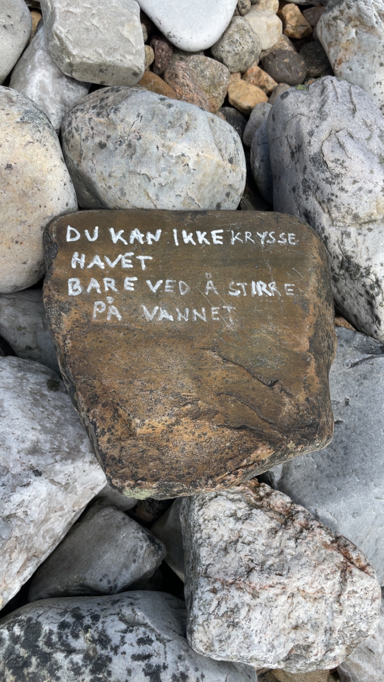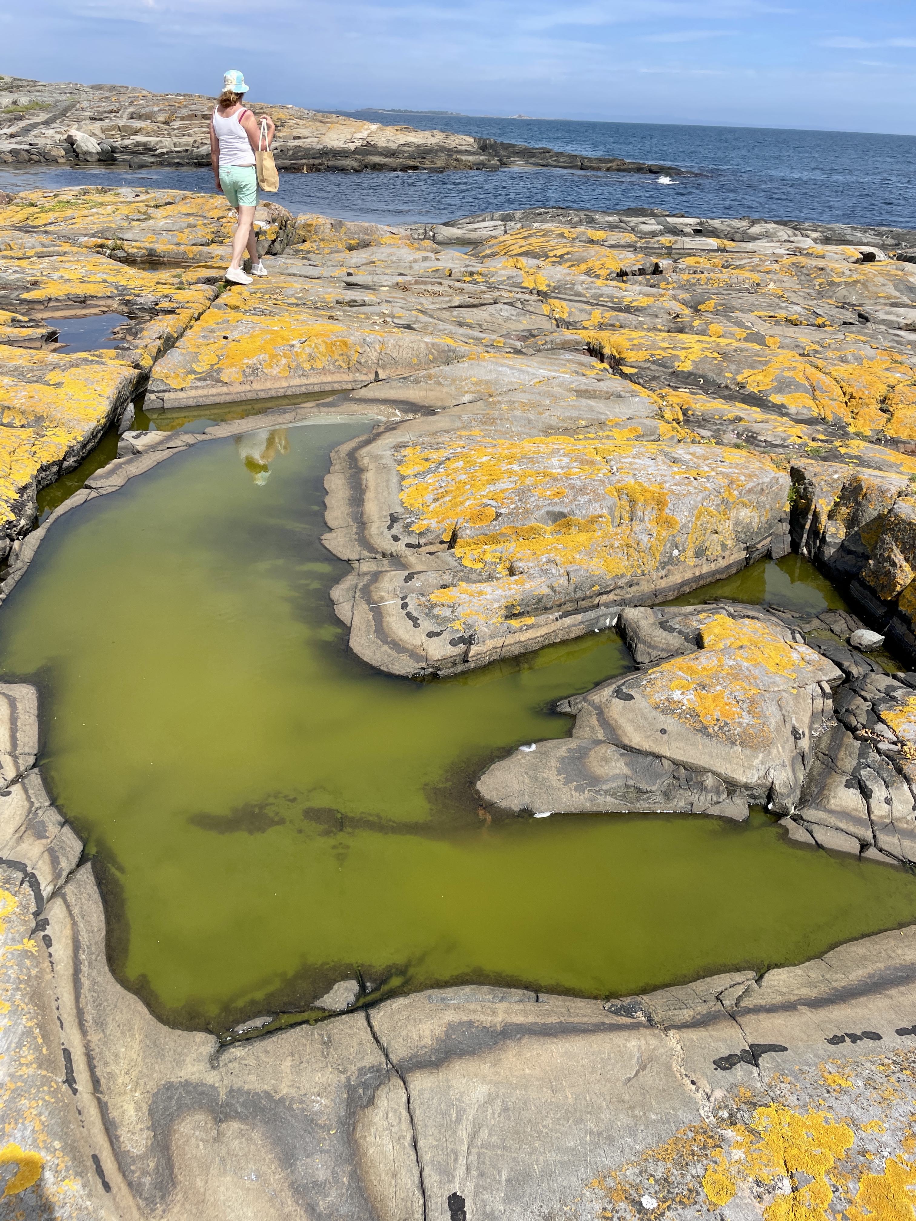 Som seg hør og bør på tur hadde vi med oss vin. I plasflaske denne gangen. Flasken ble lagt i vannkanten og lå der trygt og hvilte mot en stein. Men så oppdager vi plutselig at den er på vei ut i verden helt på egenhånd.