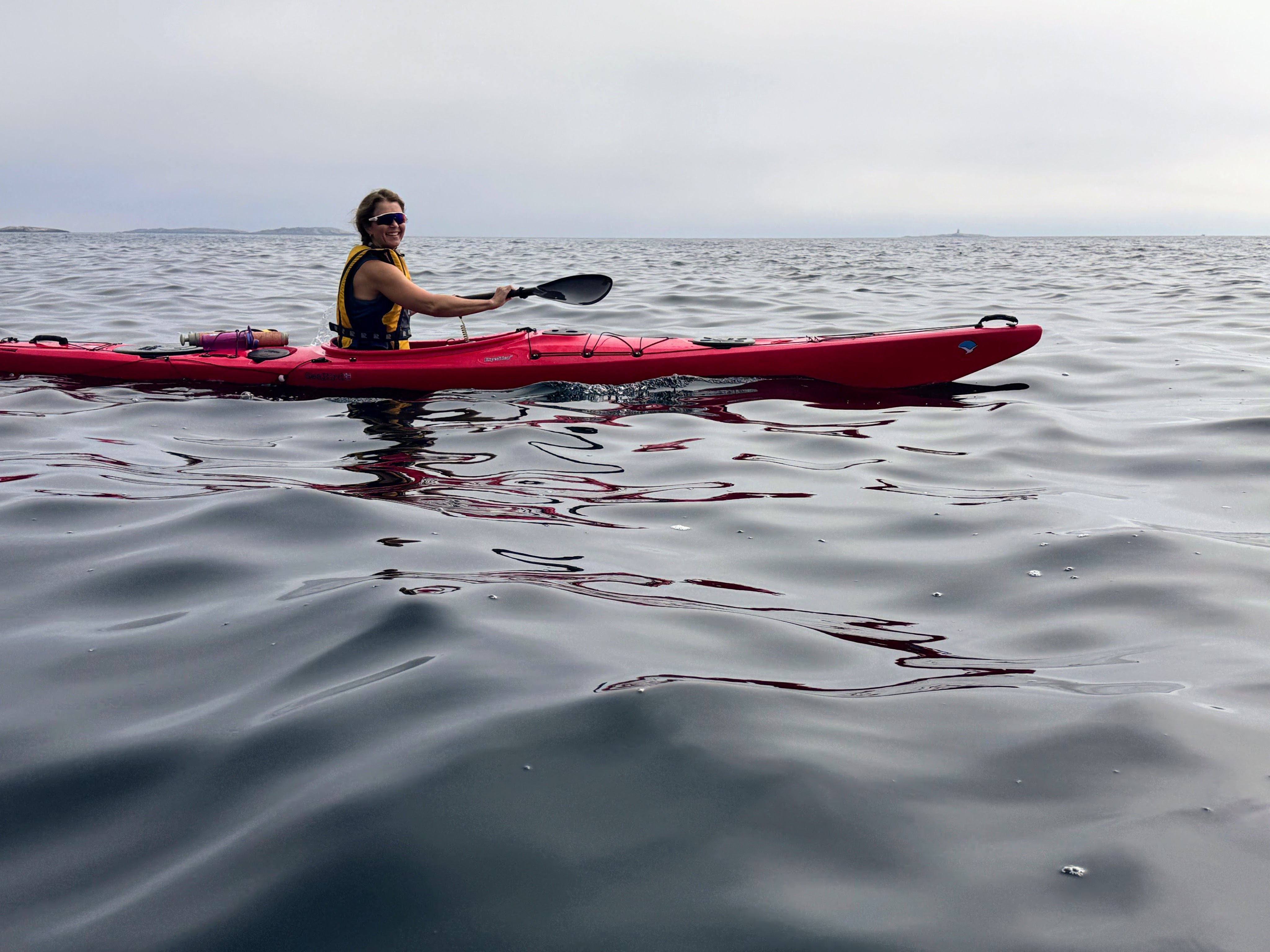 I god motvind, men med en ufattelig god evne til å lære nye ting, gikk padlingen nå som en lek. Vi kommuniserte, vi padlet i takt, det gikk fremover og også ganske mye rettere enn dagen før. Utrolig progresjon!