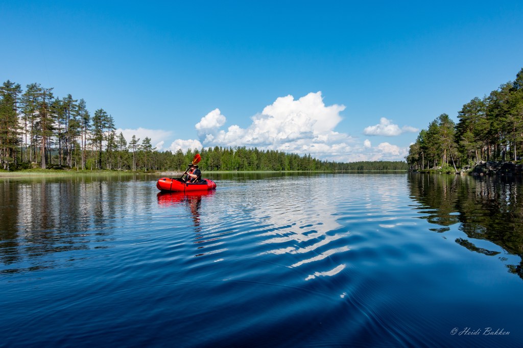 En rekke «her og nå» øyeblikk hvor tiden nesten stod stille og ingen verdens ting var viktig. Bare være – duvende i en packraft, på en innlandssjø i Innlandet, i sola og stillheten.