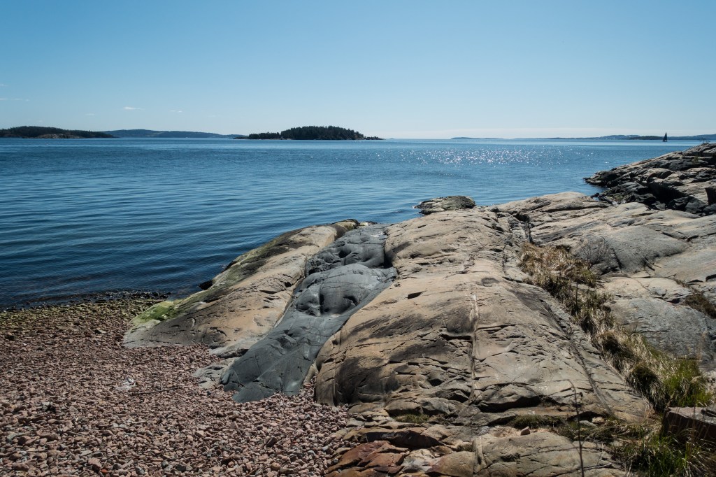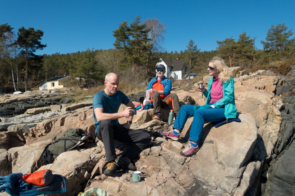 Vi rastet ikke på det flotteste stedet på turen, men derimot midt i stien. Når vi fortsatte turen tok det ca 10 minutter før vi traff på «Skjærabenken» hvor vi burde tatt lunsjen. Da måtte vi bare ha en ny pause.