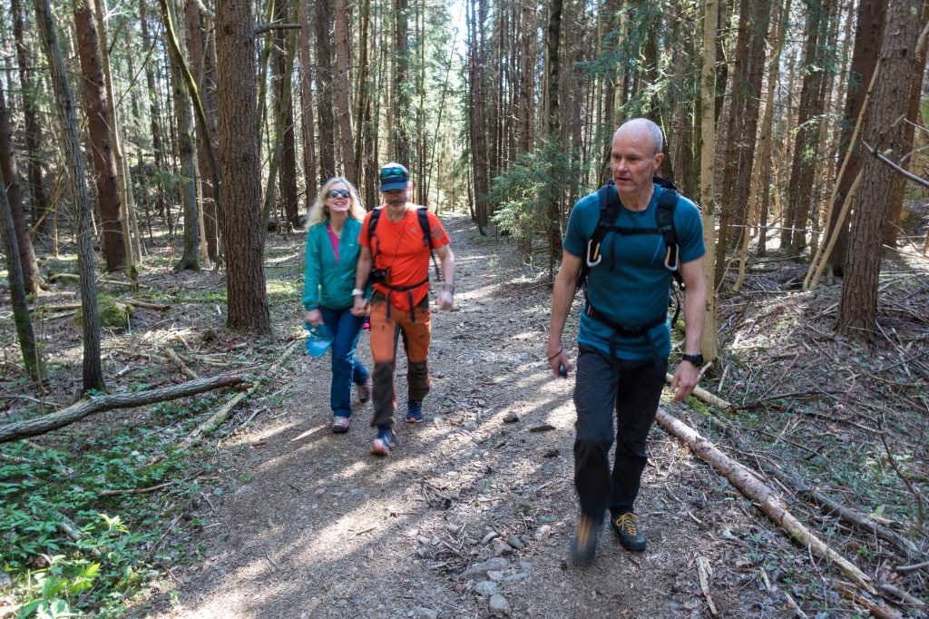 Turen videre gikk både opp og ned i sommervarm, velduftende skog. Praten gikk lett, fuglene kvitret, sekken var tung, men allikevel litt lettere enn kvelden før.