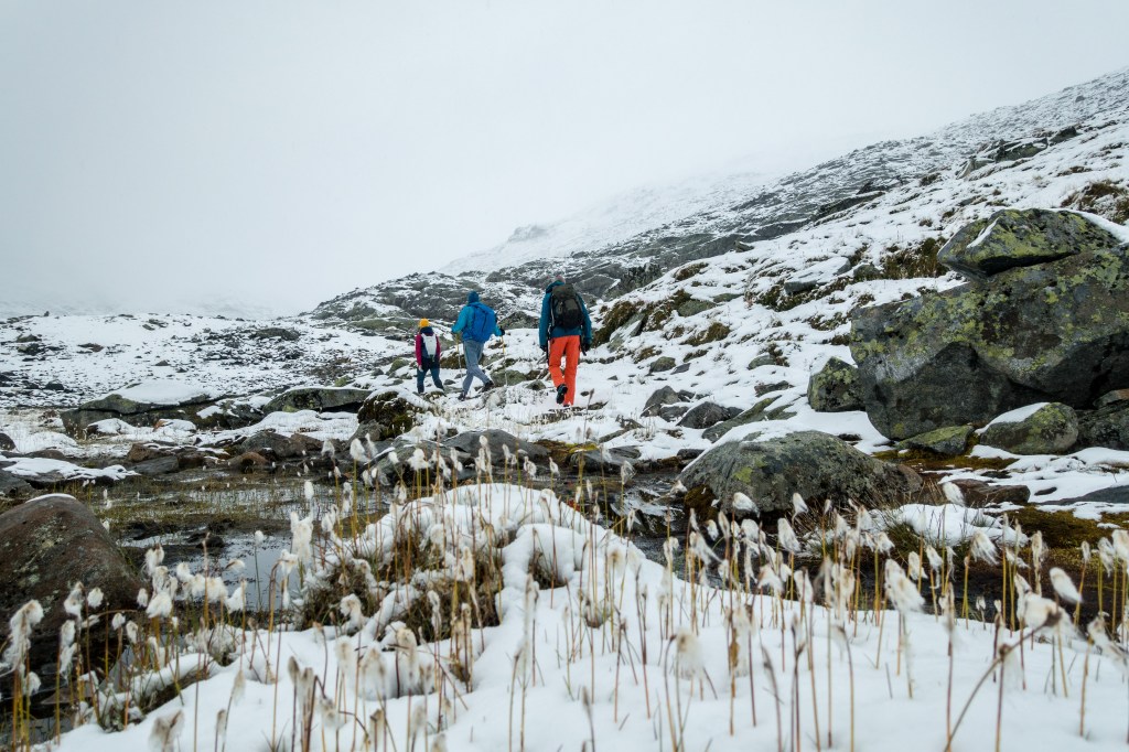 Vi la av sted fra Leirvassbu tidlig en lørdag morgen. Været var strålende, ikke for kaldt og høstfargene hadde så vidt begynt å vise seg frem. Vi var på tur og smilene satt lett.