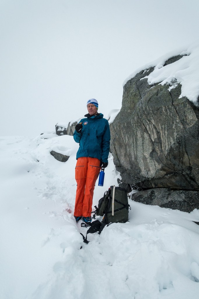 Det rette veivalget var imidlertid ikke så lett å se, men som man sier på godt norsk «the only way is up». Vi fant en semi-naturlig rute og kløyv til topps i relativt fast fjell. Ingenting å si på utsiken.