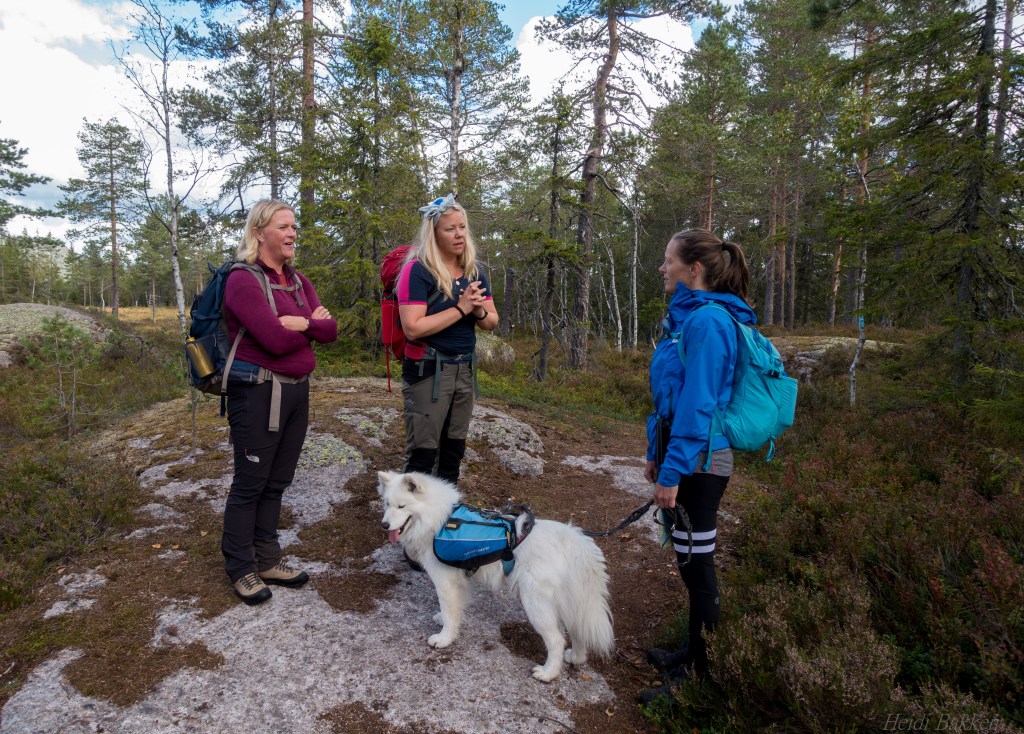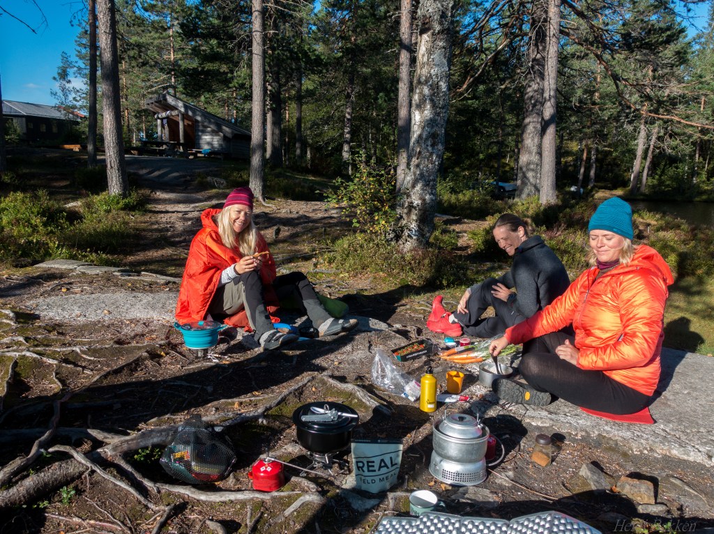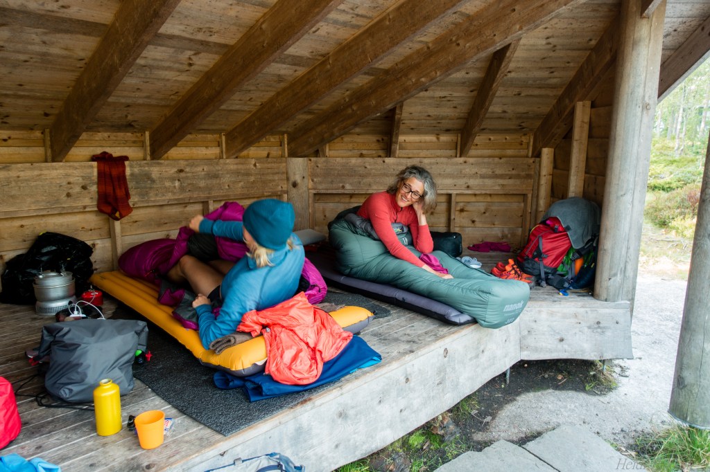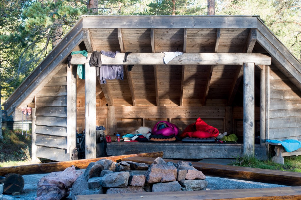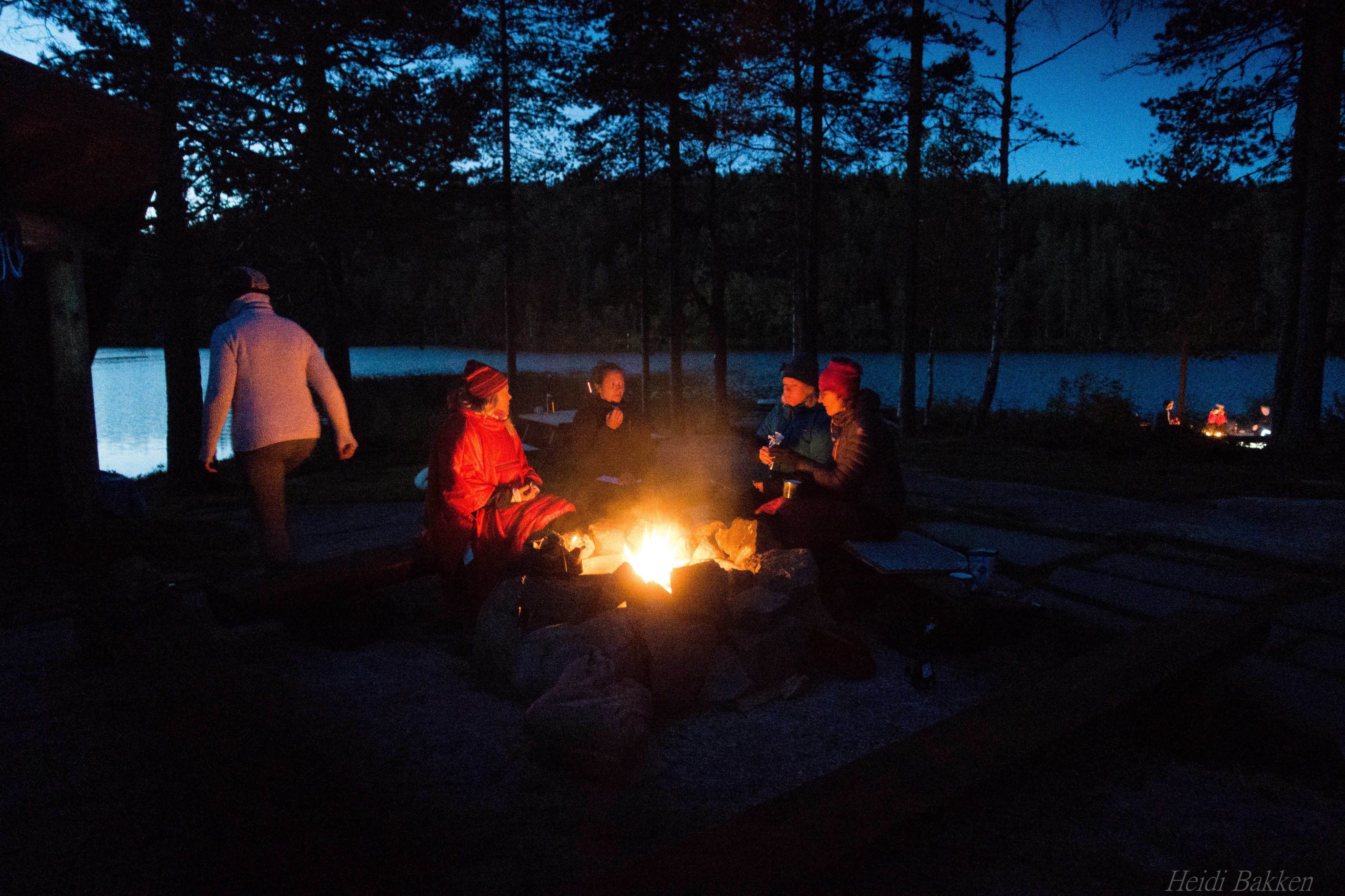 Planen var egentlig å overnatte inne på DNT hytta. Vi hadde imidlertid ikke reservert plass og hytta var nesten smekkfull da vi kom. Så full at da vi så på klokka, som kun viste 17.30, bestemte vi oss for å pakke sammen packraftene, slenge alt utstyret på ryggen og gå de 4 km til Store Sandungen. Kvelden var enda ung.