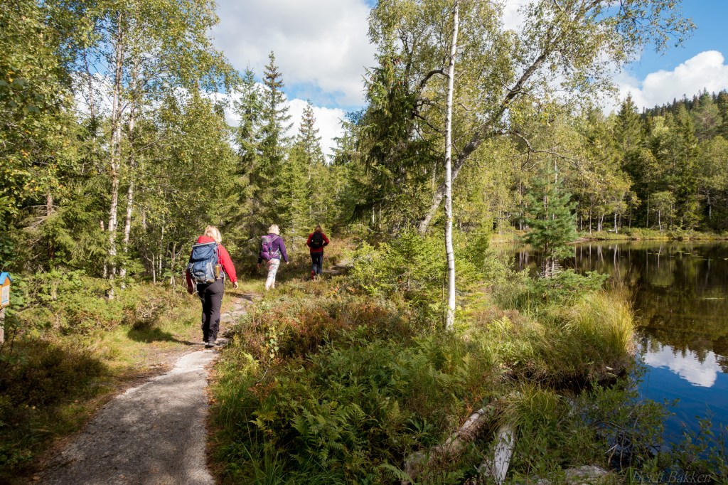 Fra Bjørnholt gikk vi et lite stykke på grusvei før vi tok sti inn i skogen ned til Rottungen.