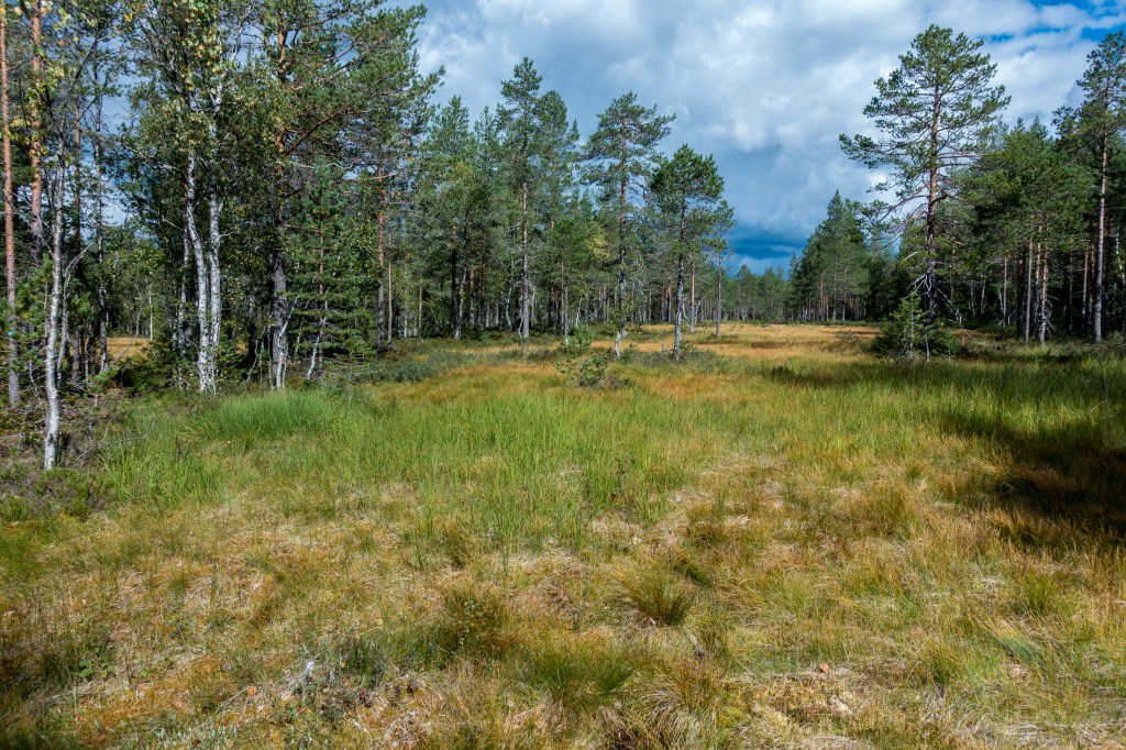 Ved Store Sandungen ble vi dessverre litt kreative. Hilde Lillian hadde vondt i en arm og vi bestemte oss for å gå langs land for å finne en leirplass. Ingen god plan. Vi burde helt klart satt ut packraftene så fort vi hadde mulighet og padlet til camp. I stedet gikk vi inne i skogen på en kronglete sti. Sekkene var tunge, vi så knapt vannet gjennom skogen og i hvert fall ingen steder vi kunne overnatte.