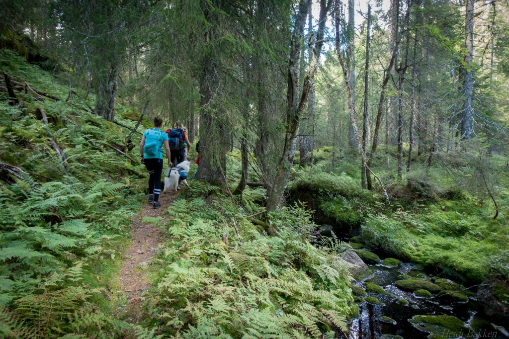 Vi har senere skjønt at vi ikke skulle tatt stien til høyre for demningen, men den til venstre. Den stien hadde nok vært litt mer «gåbar» selv om den også beskrives som våt. Nok et tips: Les rutebeskrivelsen nøye.