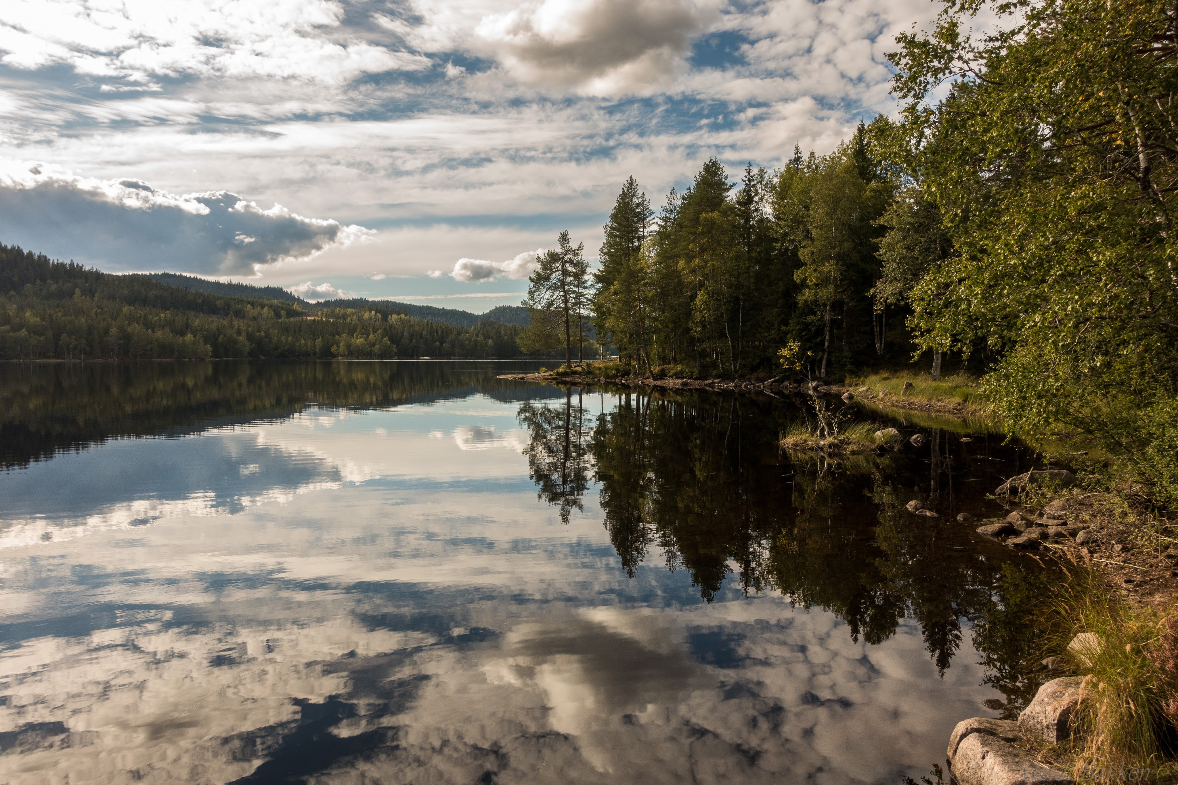 Fra smale Aklangen padlet vi ut i store, brede og vakre Katnosa. Det er en av de lengste padleetappene på turen, rett over 3 kilometer. Turen over Katnosa avsluttes i det som kalles Leveringsvika, helt sør og øst i Katnosa. Her ligger også DNT hytta Katnosdammen.
