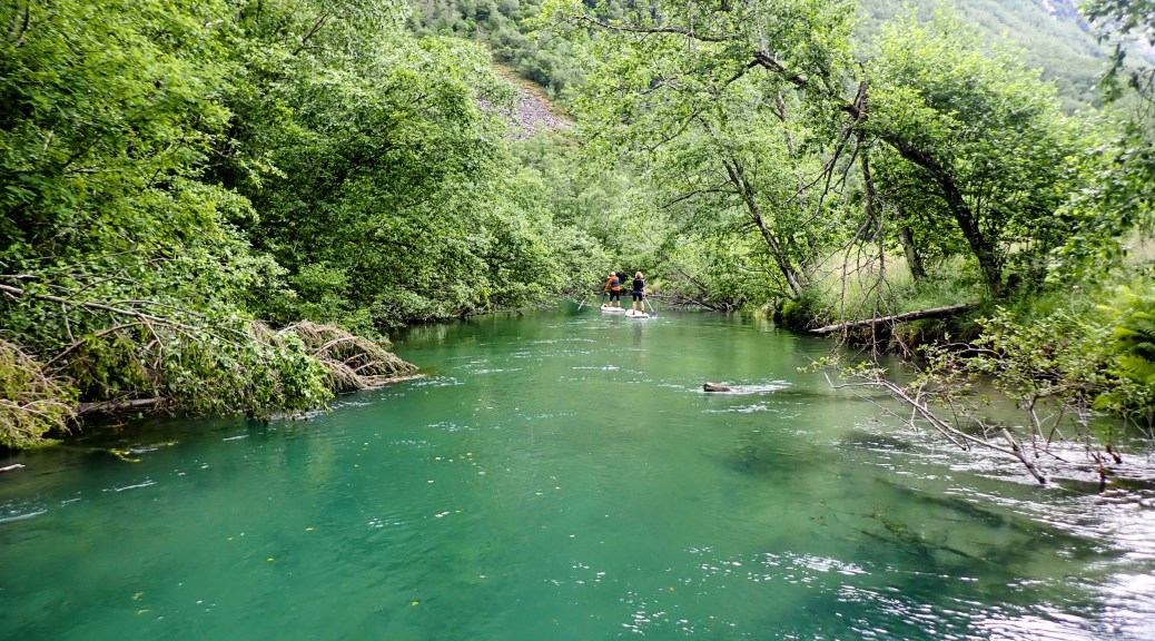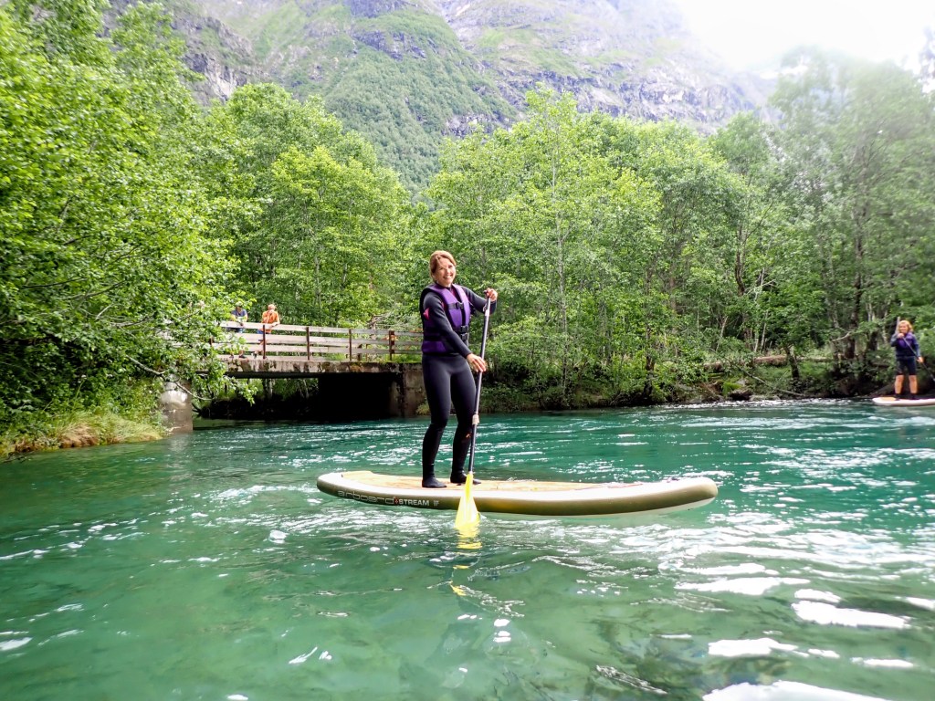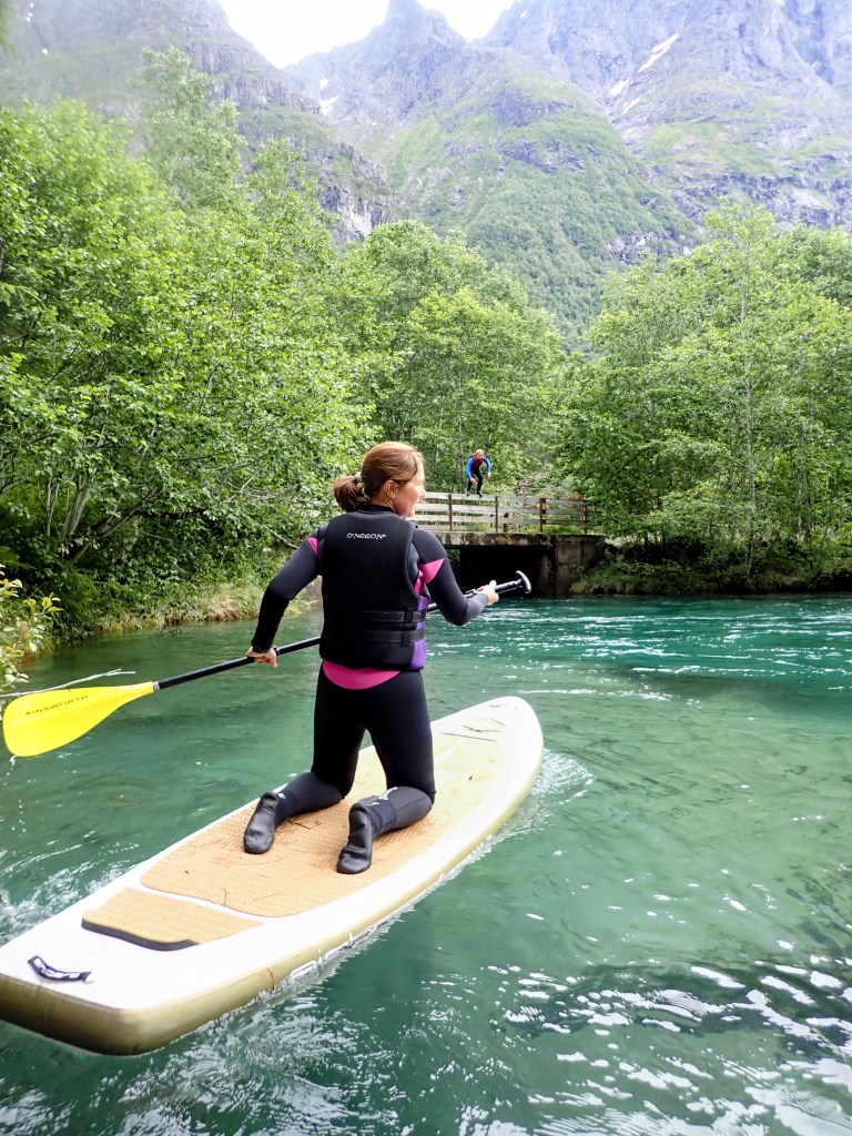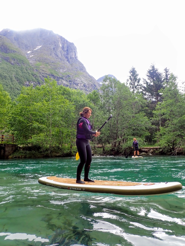 Det er Fjellfestival i Åndalsnes og mye spennende på programmet. Jeg har aldri forsøkt Stand Up Paddling (SUP) på elv før og tenkte at det kunne være gøy. Som sagt så gjort.
