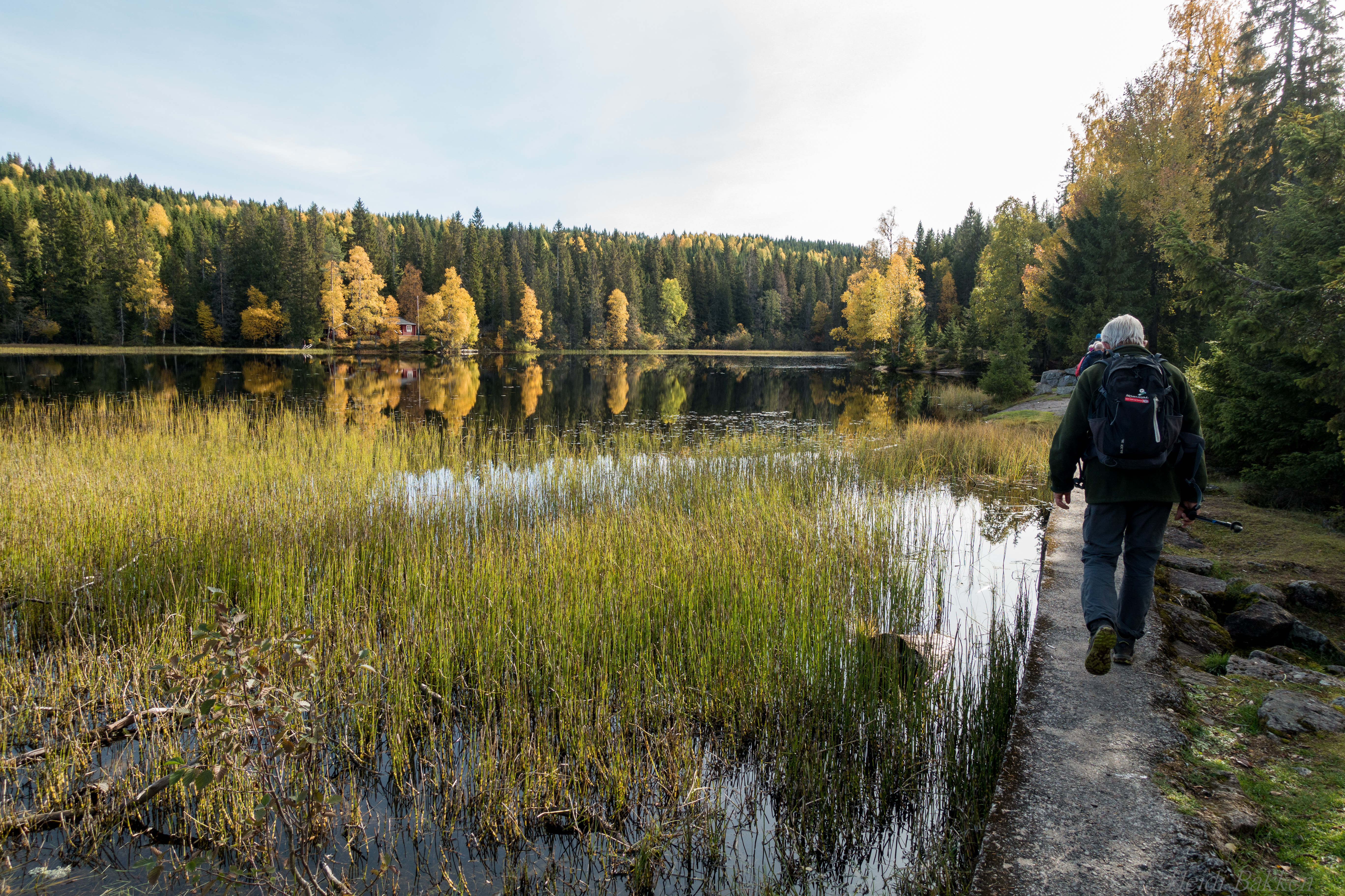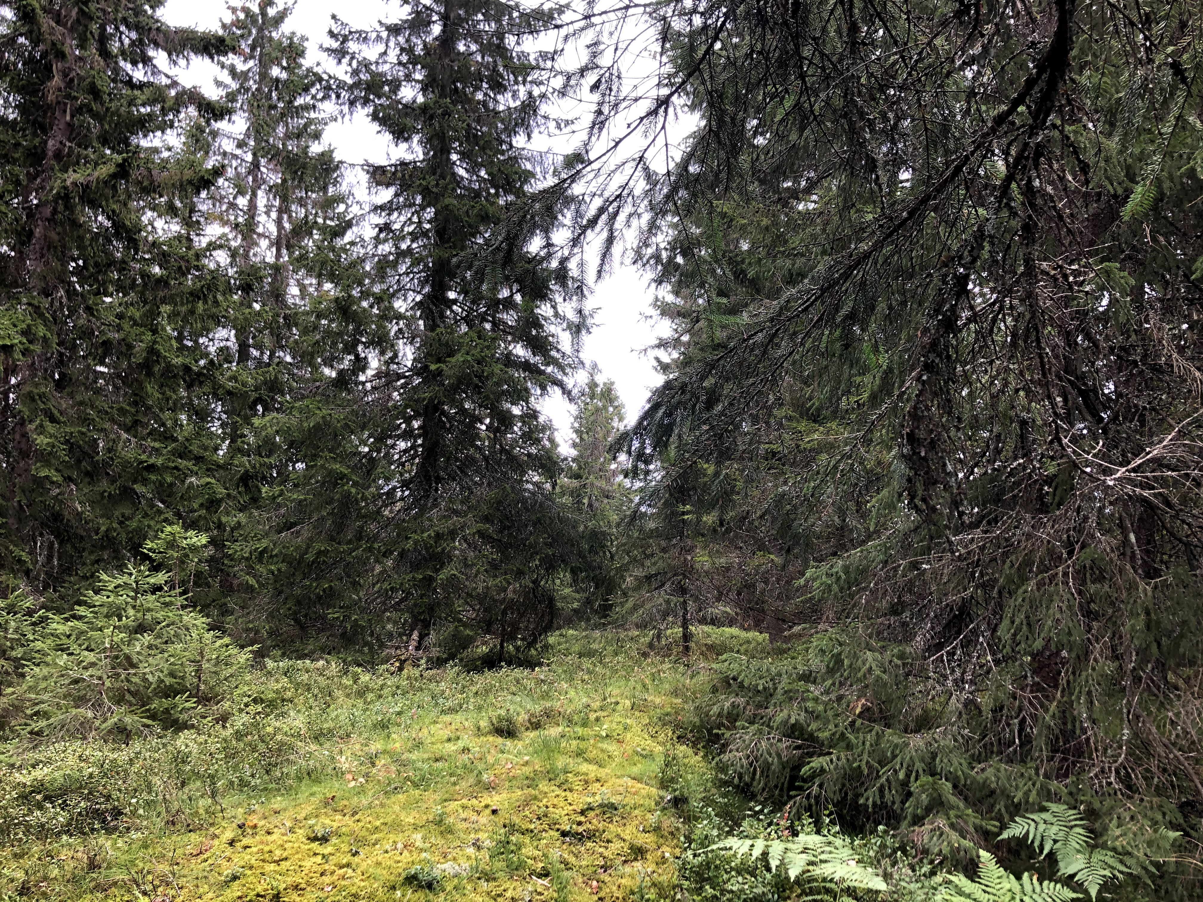 Vi går på beina. Man blir så ustø med tung sekk på ryggen og smale ski på beina og jeg er redd for at jeg, dersom jeg ramler, ikke kommer opp igjen. Ser for meg et scenario hvor jeg ramler fremover i nysnøen og sakte kveles liggende pladask på magen, med ski og staver i alle retninger og en sekk som presser meg ned mot jorden. Ikke en lystig måte å ta kvelden på. Derfor på beina.