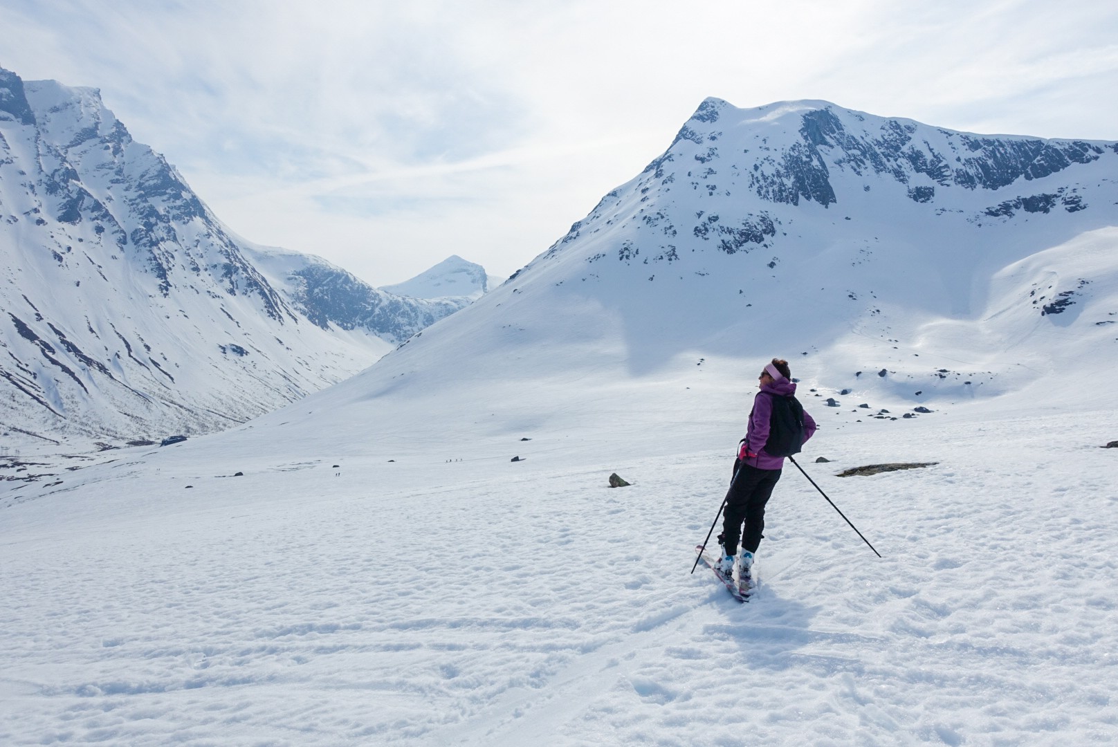 Det var et merkelig vær denne dagen. Vi gikk i sol, med skyer rundt oss på flere kanter og samtiden som sola skinte snødde det! Merkelig å gå med oppbrettete ermer og kjenne snøen prikke på solvarm hud.