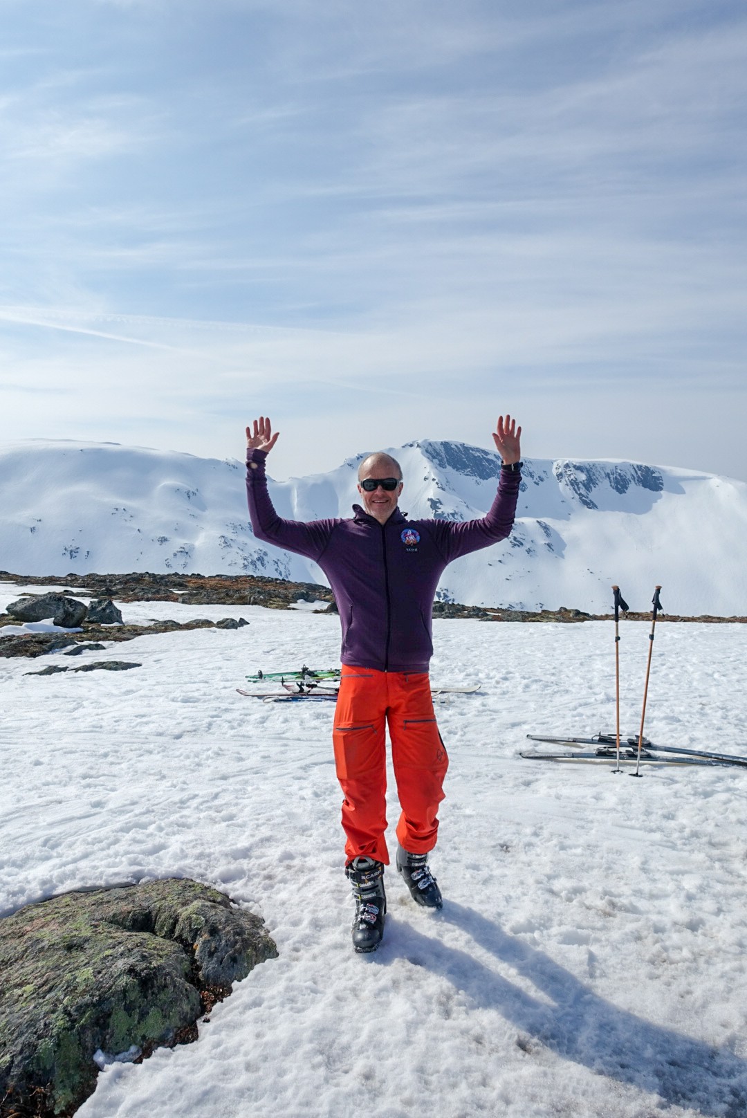 Vel oppe ble det ikke så mye hvile for sure bein. Kun litt posering for fotografen før det skiftes til nedkjøringsmodus. Jeg burde nok ha tatt fem minutter til i hvilemodus.