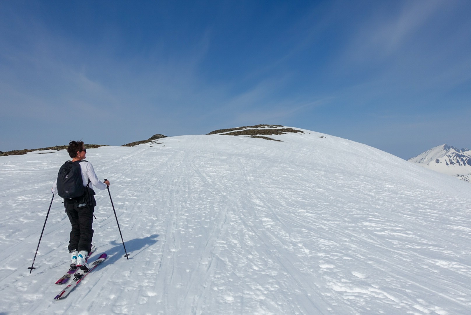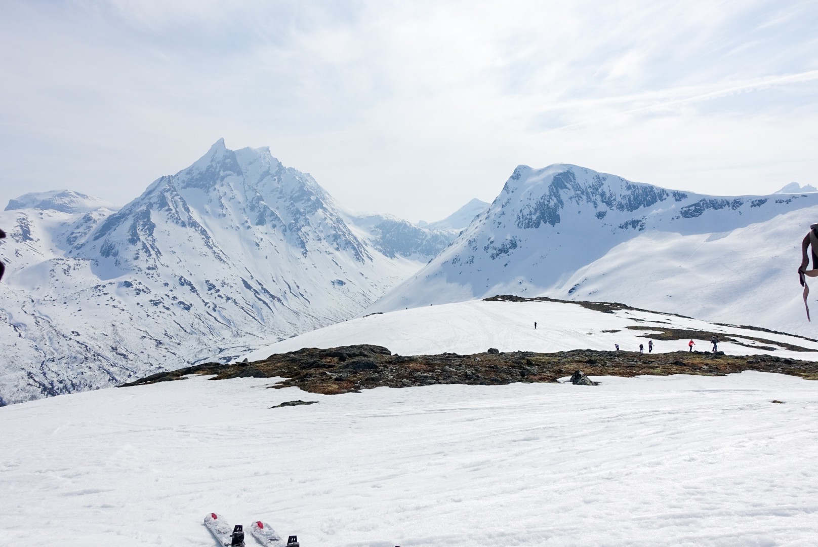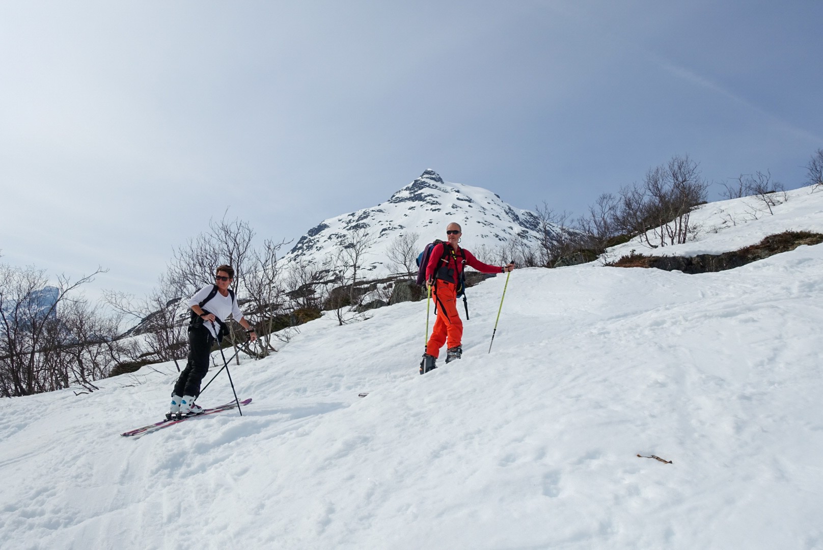 Vi var 7 personer i gruppa vår. 2 på langrennsski, 3 på fjell ski og 2 på randonee ski. Alle varianter fungerte like fint. Vi som slet med oss det noe tyngre rando-utstyret oppover fikk belønningen på nedturen. Vi var nede 30 minutter før de andre.
