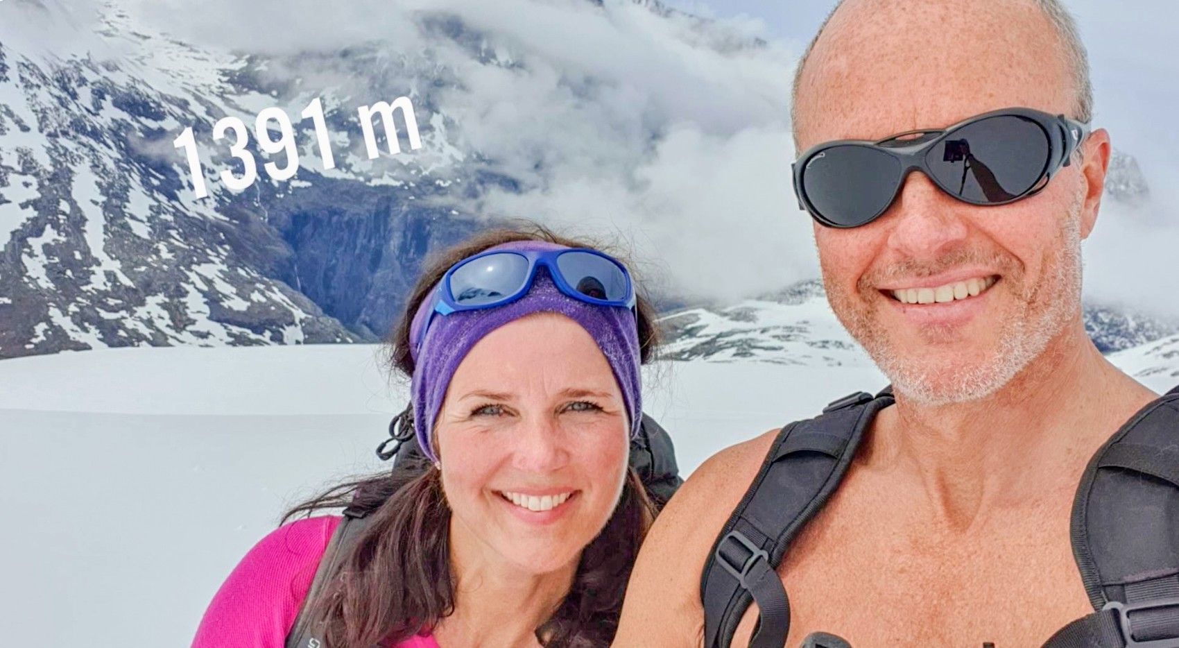 Evy og Tony koser seg opp mot toppen i munter passiar.