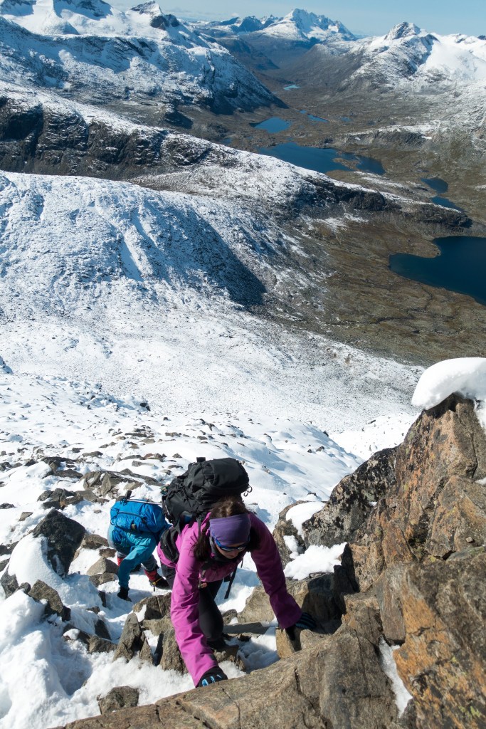 Plan B ble å klumpe oss sammen under den ene tarpen vi hadde tatt med oss. Plastposer rundt enden på soveposen som stakk utenfor tarpen og ellers stramme opp som best vi kunne. Det ble litt trangt og lavt under tarpen, men funket greit. Vi kan improvisere – og var veldig fornøyde med oss selv.