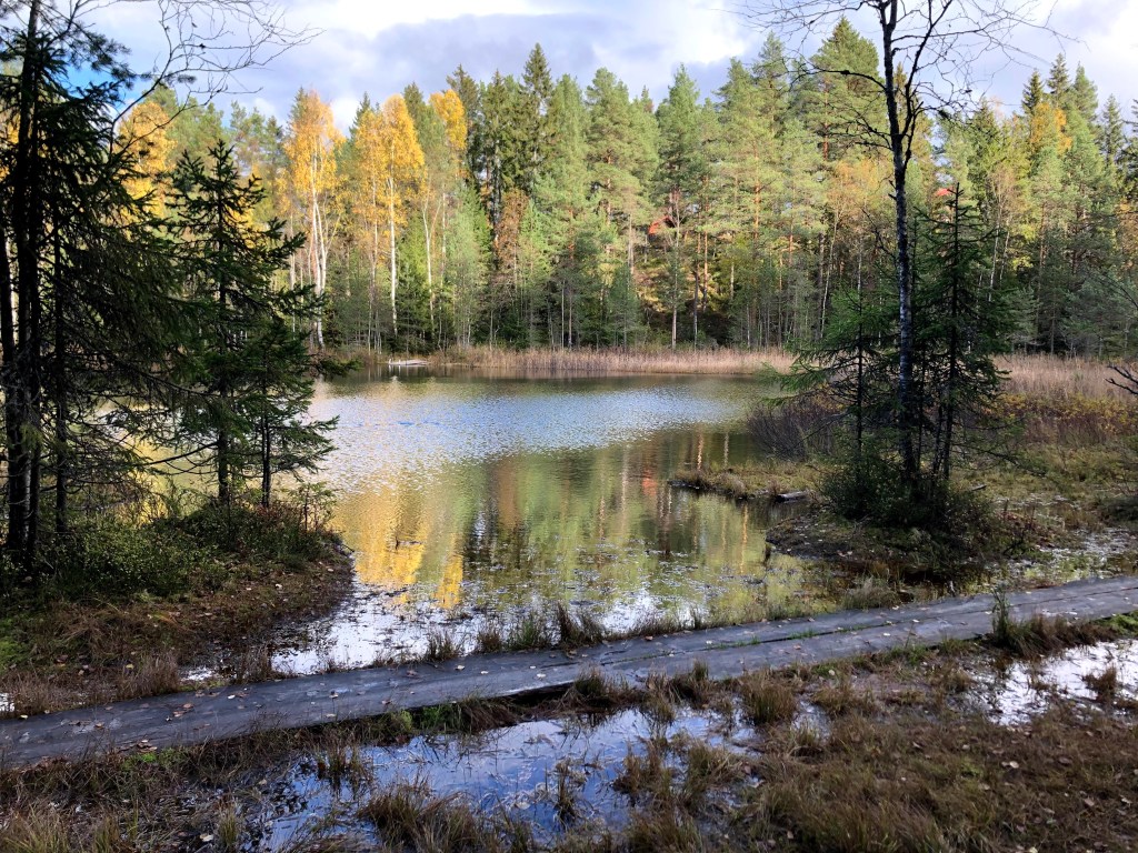 Vi spiste en nydelig middag i oppholdsvær, så utover vannet og nøt stillheten og den relative roen skogen gir.