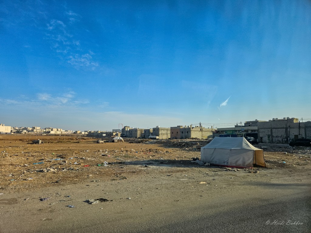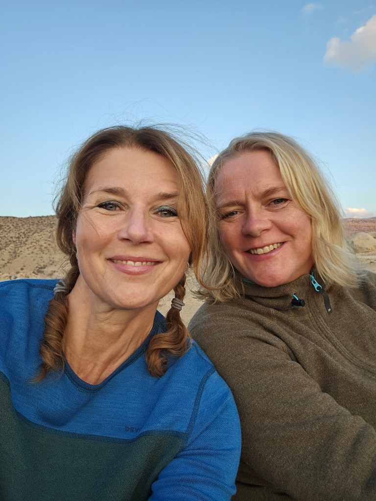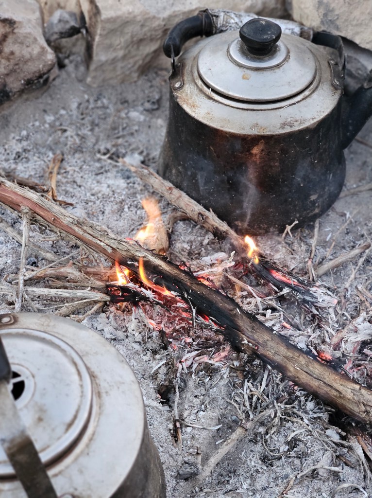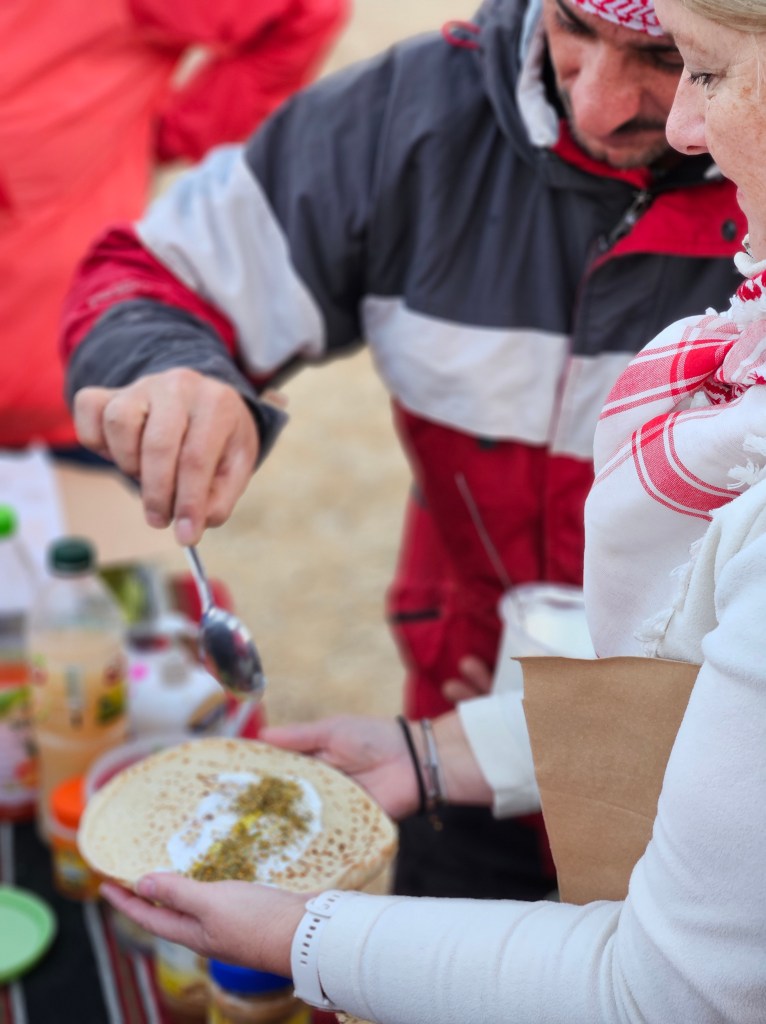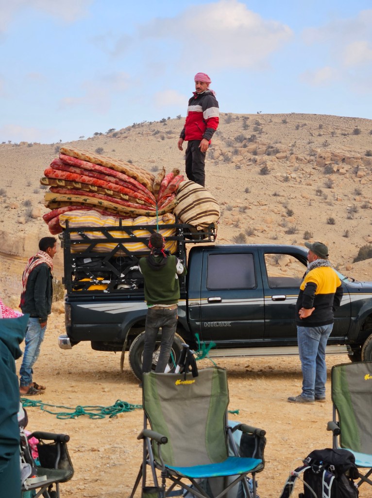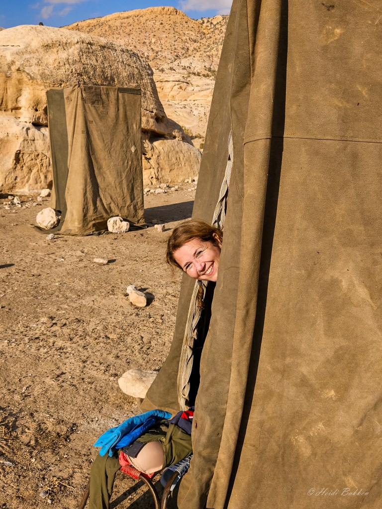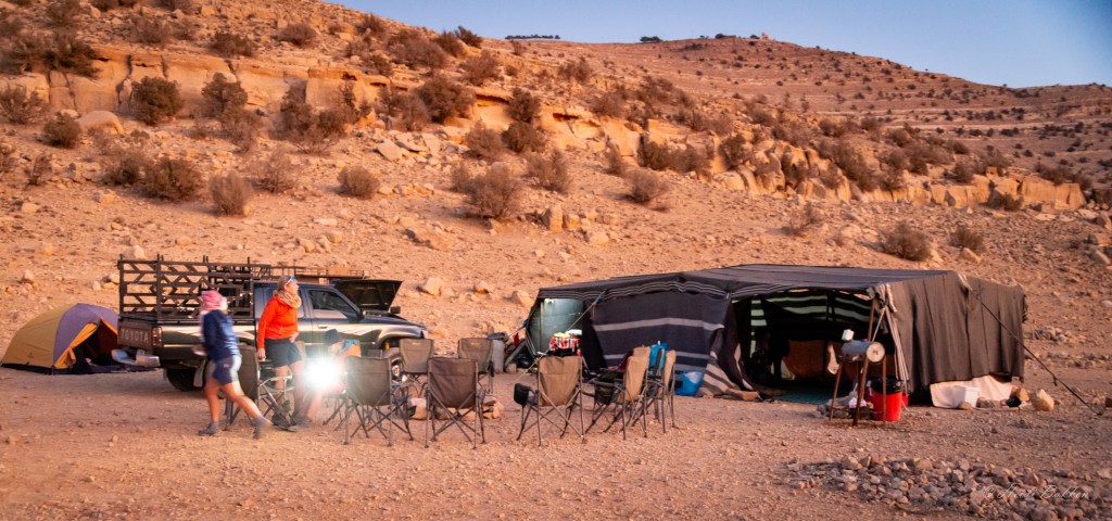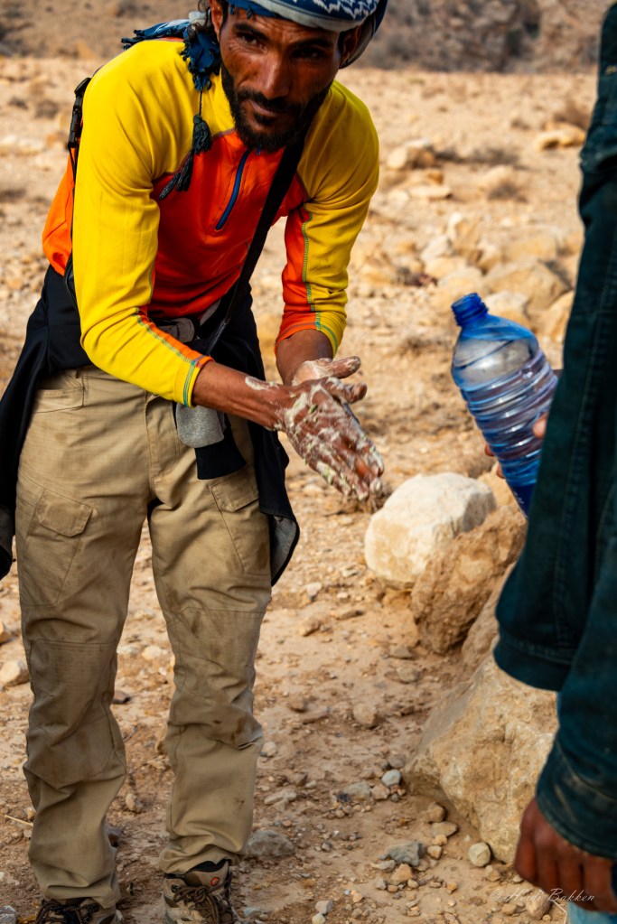 Vi fortsatte fra leiren vår i Ghbour Whedat med godt humør, en støvete vei under oss, smil i fjesene og sol fra en skyfri himmel over oss. Vinden vi har blitt advart mot uteble også denne dagen.