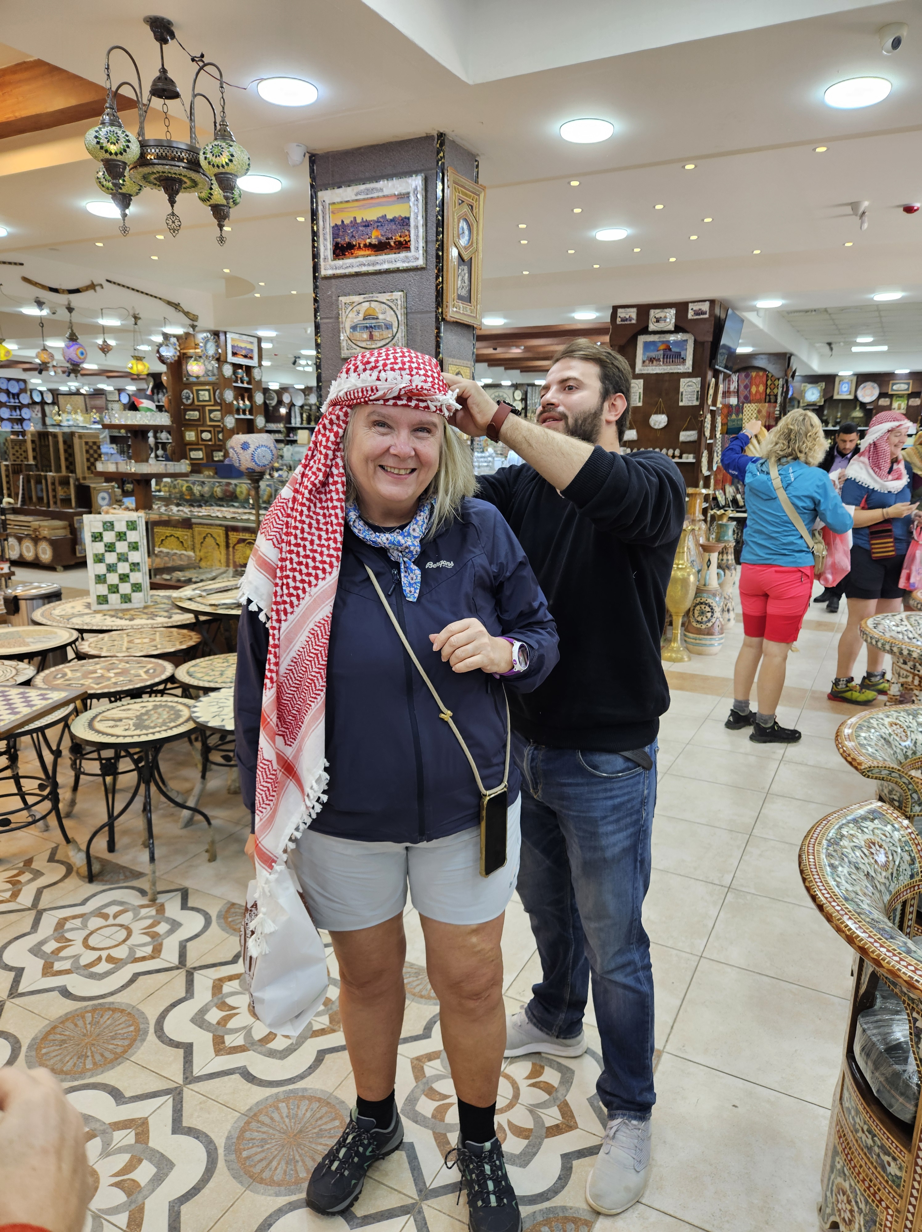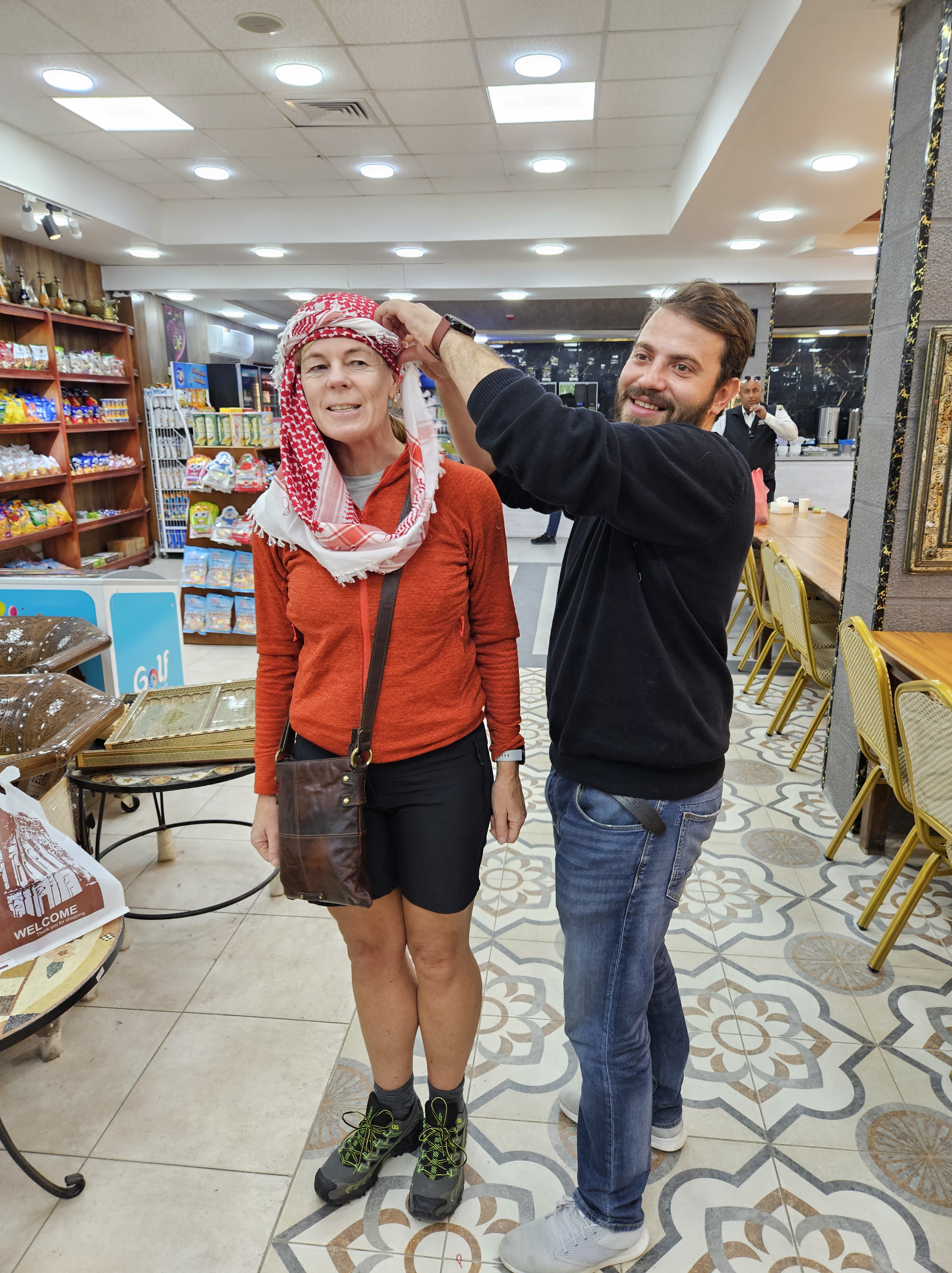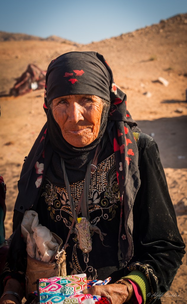 Underveis ser vi flere beduin bosetninger og sannelig ble det også muligheter for litt shopping. Den lokale gjeterdamen får avsetning på håndarbeidene sine og vi går videre med litt tyngre sekker og litt lettere lommebøker.