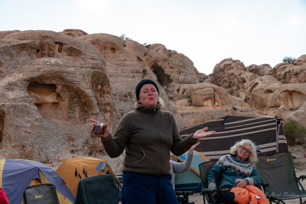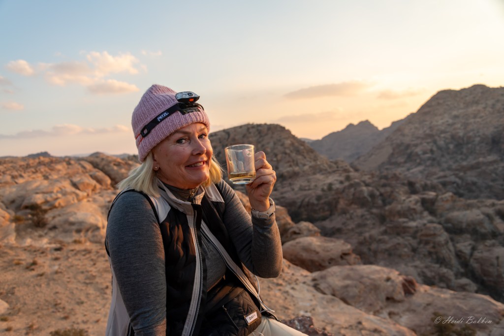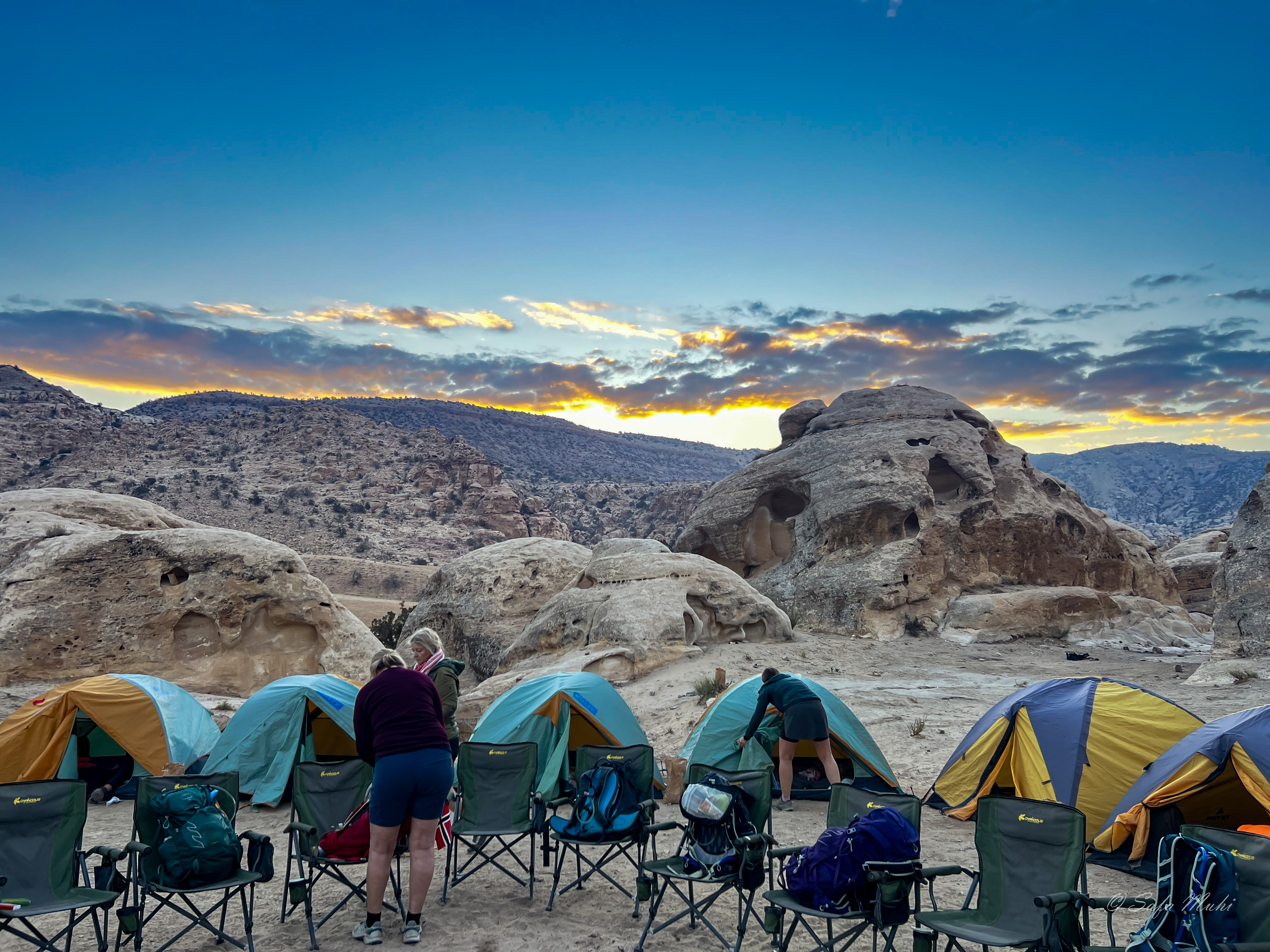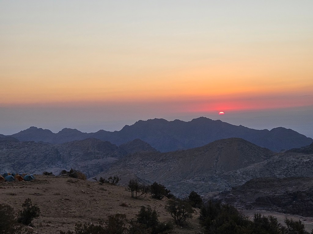 Vi overnattet i en flott beduinleir rett utenfor Lille Petra. Teltene hadde eget bad med dusj! Det ble også nok en solnedgang på oss fra en knaus bak campen. Det var ikke noe å si på stemningen denne kvelden heller.