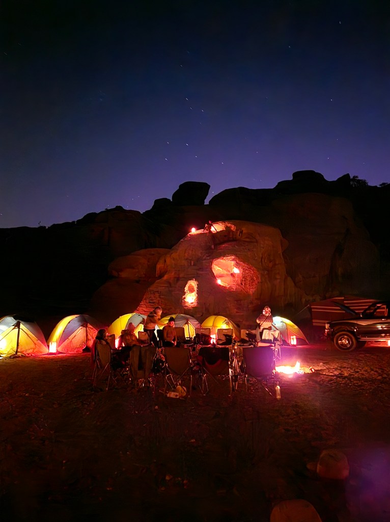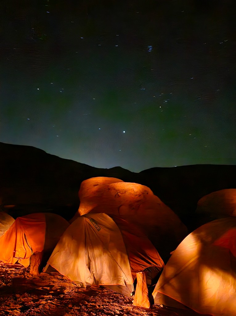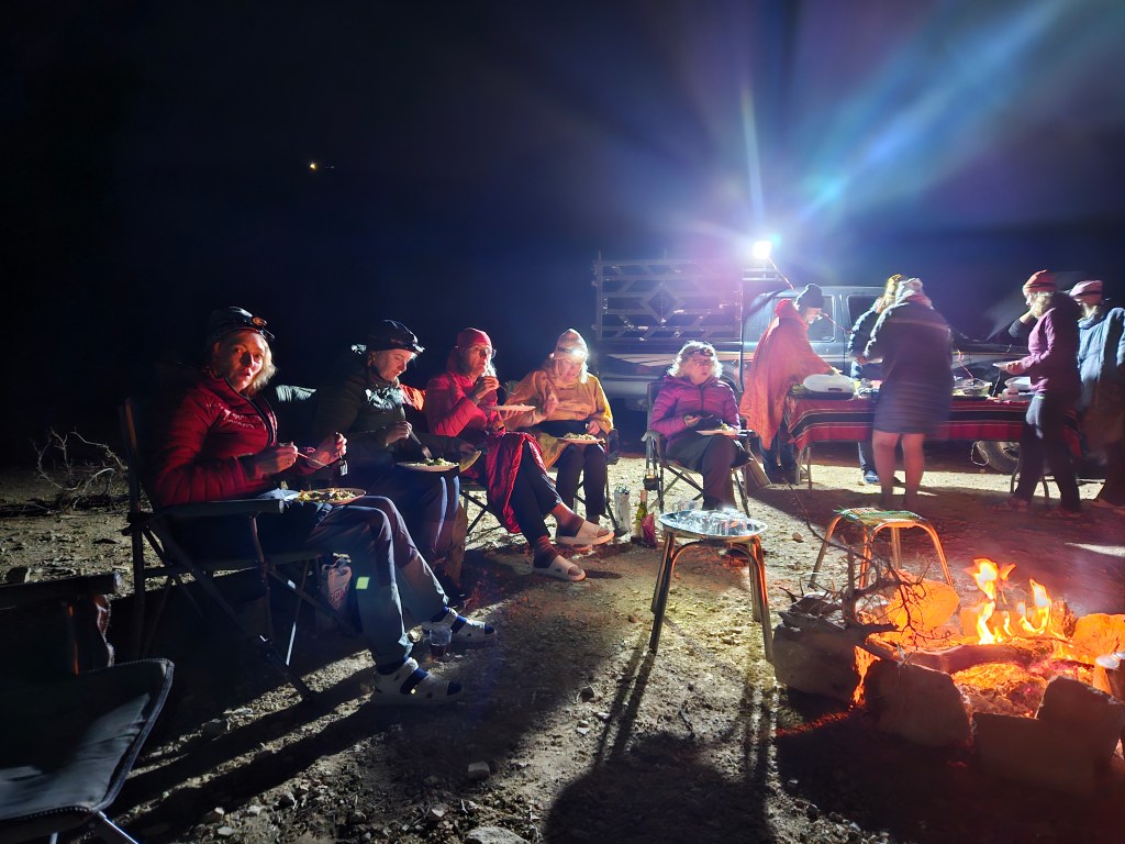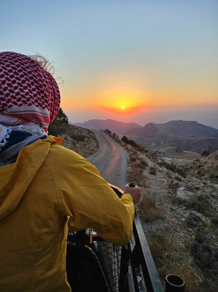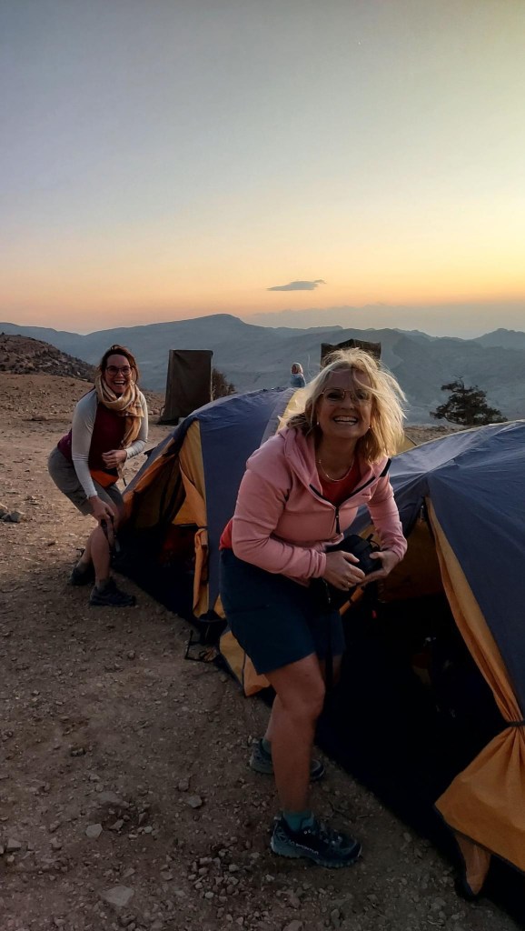 Vi overnattet i en flott beduinleir rett utenfor Lille Petra. Teltene hadde eget bad med dusj! Det ble også nok en solnedgang på oss fra en knaus bak campen. Det var ikke noe å si på stemningen denne kvelden heller.