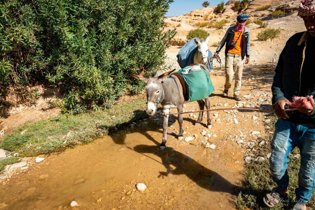 Bilde nummer tre i karusellen under viser den eneste vannpytten vi så under hele turen. Utrolig nok var det kun det ene eselet som ville drikke. Hvor de har fått vann fra ellers på turen er et lite mysterium.