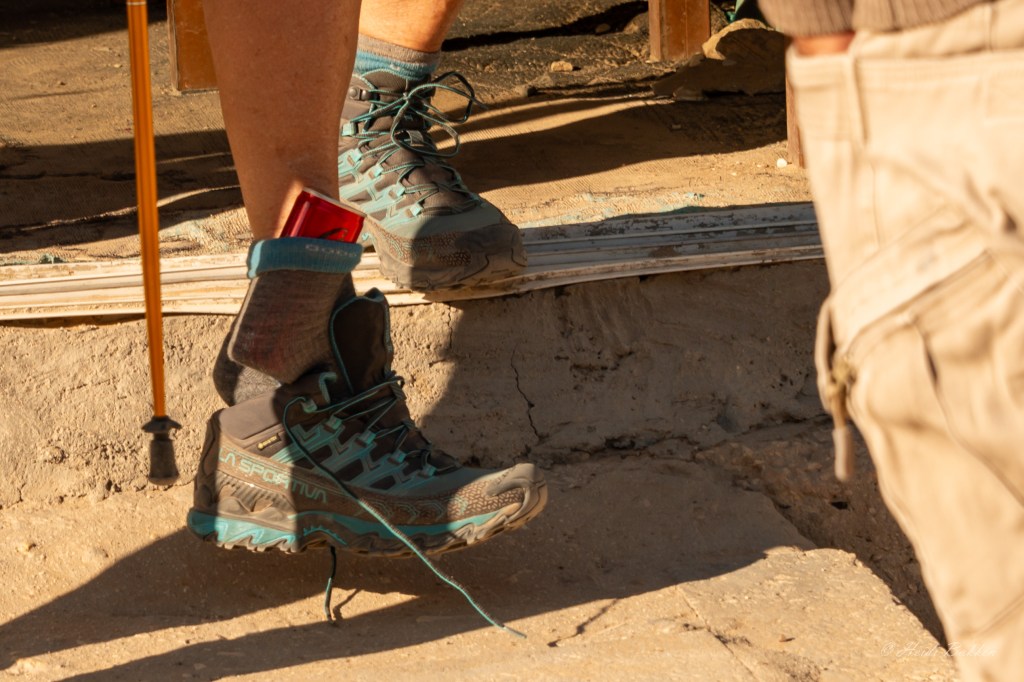 Vi hadde et stykke igjen til Lille Petra og flere begynte å kjenne på såre føtter. Under ett tre ble det plastring av føtter mens vi spiste dadler og nøtter.