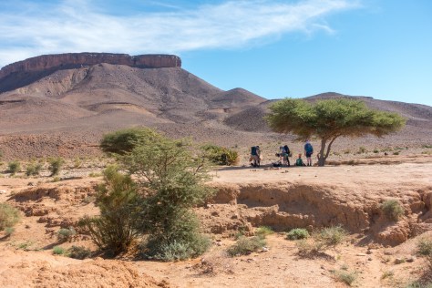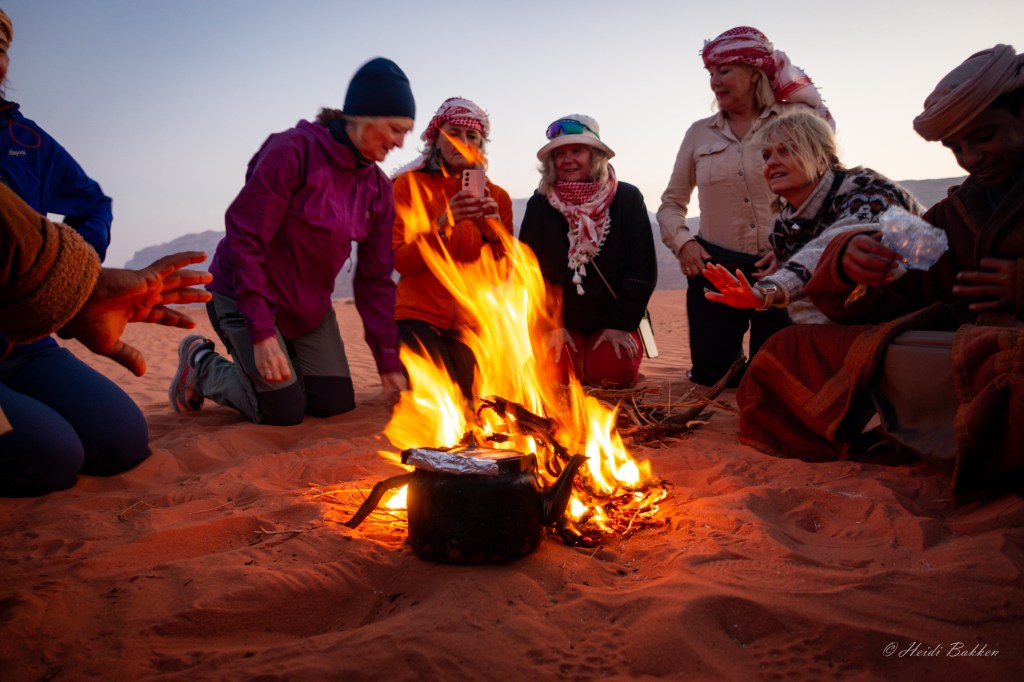 Litt friskt var det å sitte midt ute på en slette i ørkenen uten le på noen kanter og drikke morgenteen. Dromedarførerene klarte imidlertid på mirakuløst vist å samle sammen litt ved til et bål. Ikke mye ved å ta av i dette området.