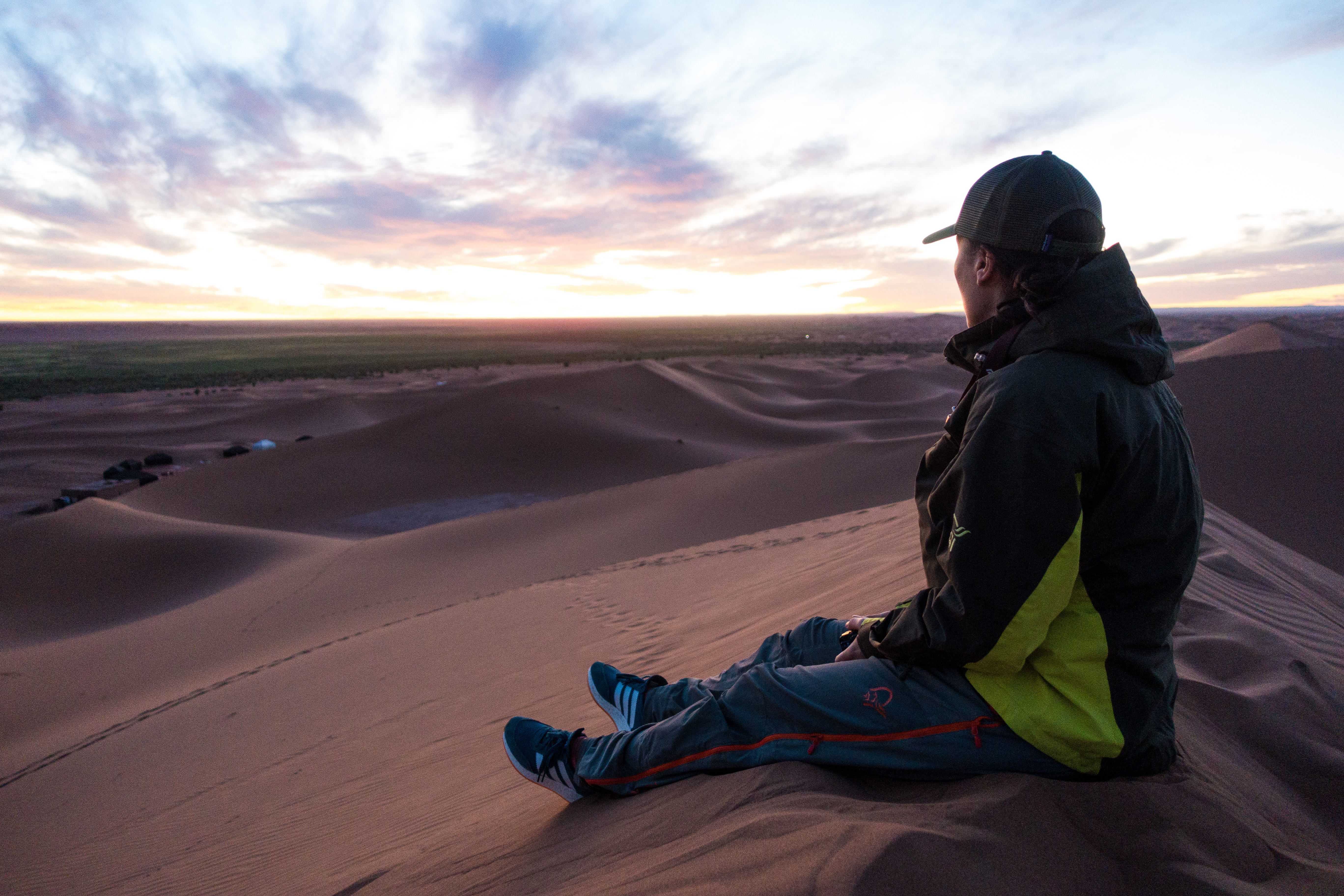 Mens sola gikk ned over ørkenlandskapet satt vi der, drømmende og henført sukkende, mens vi stirret ut mot horisonten. Toppen av tilfredshet.