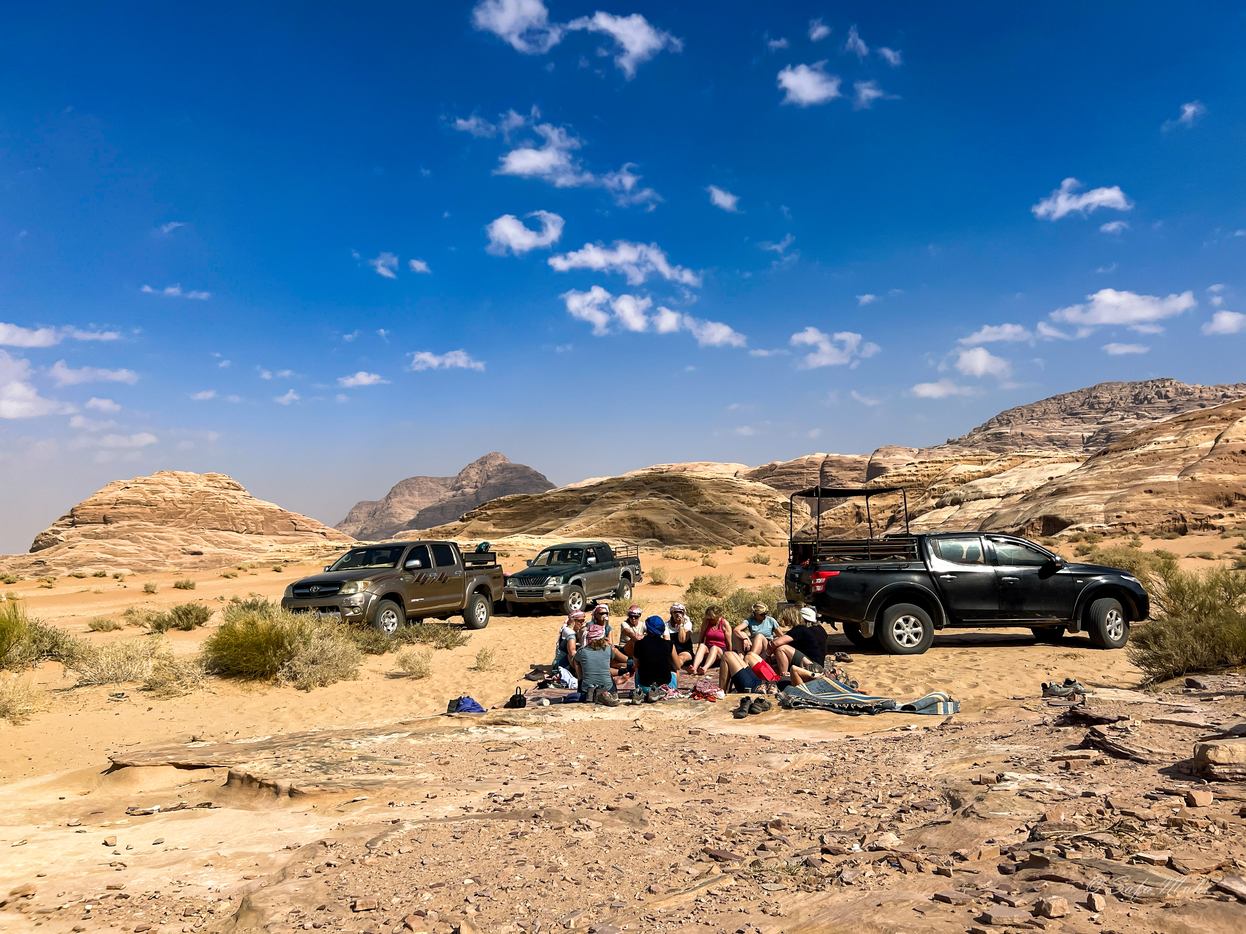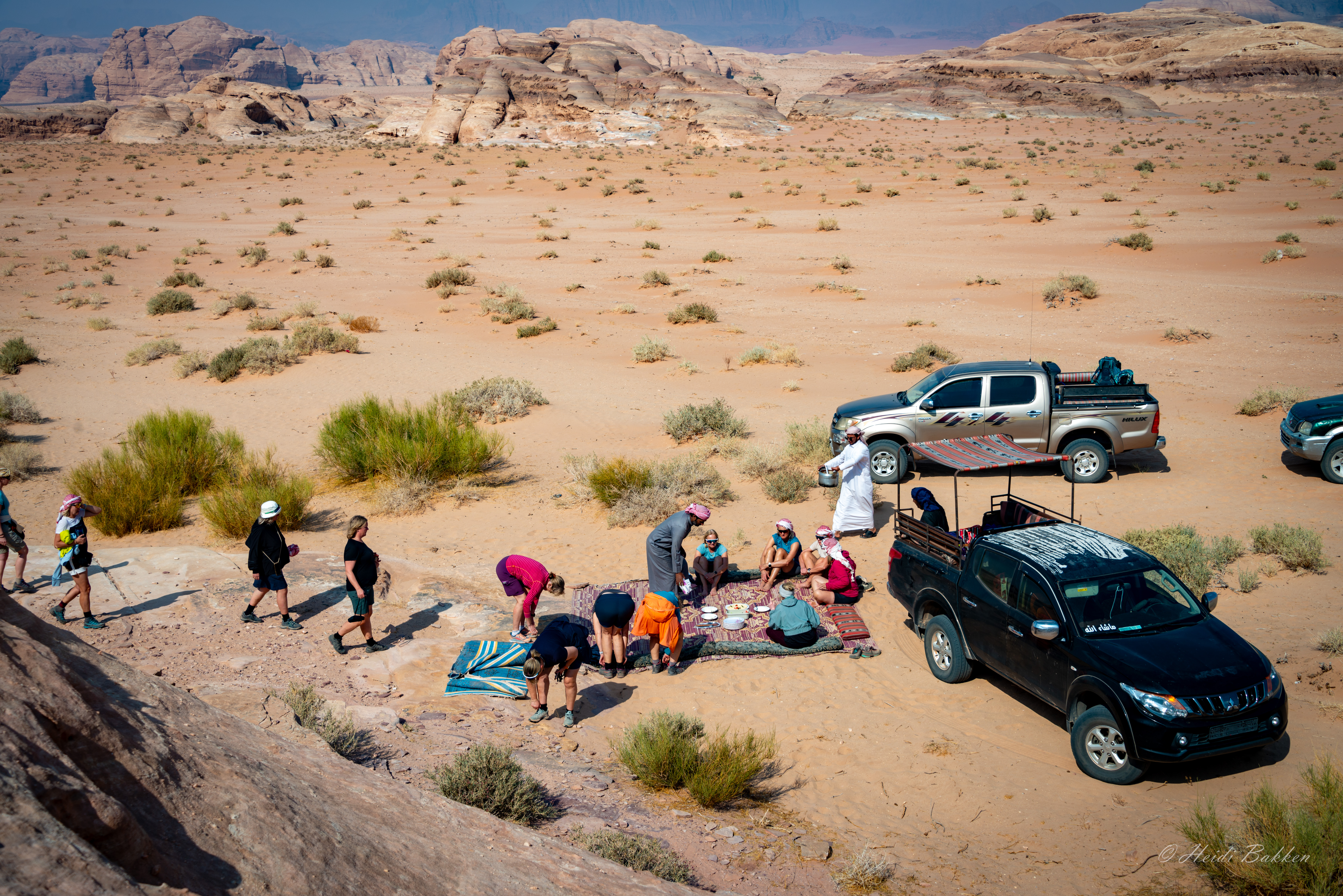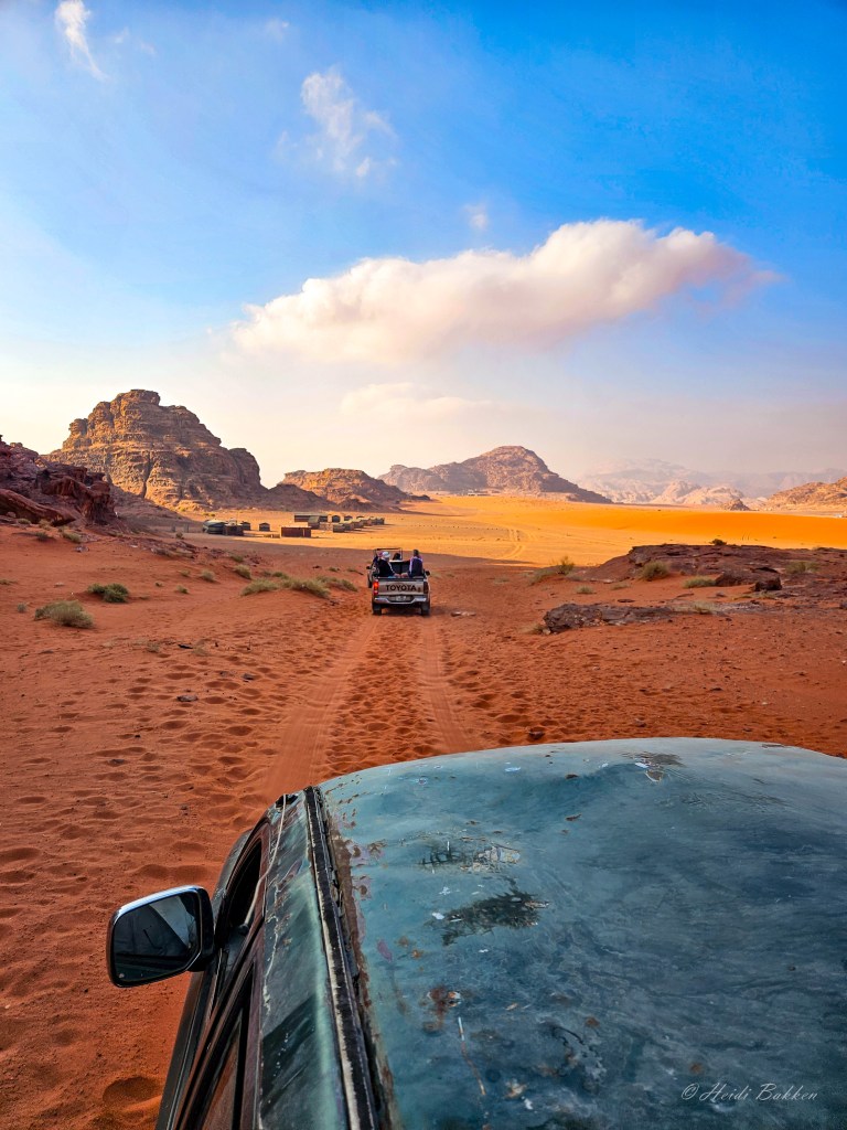 Etter en deilig frokost forlater vi leiren i jeep og begir oss ut på tur gjennom det magiske ørkenlandskapet i Wadi Rum.