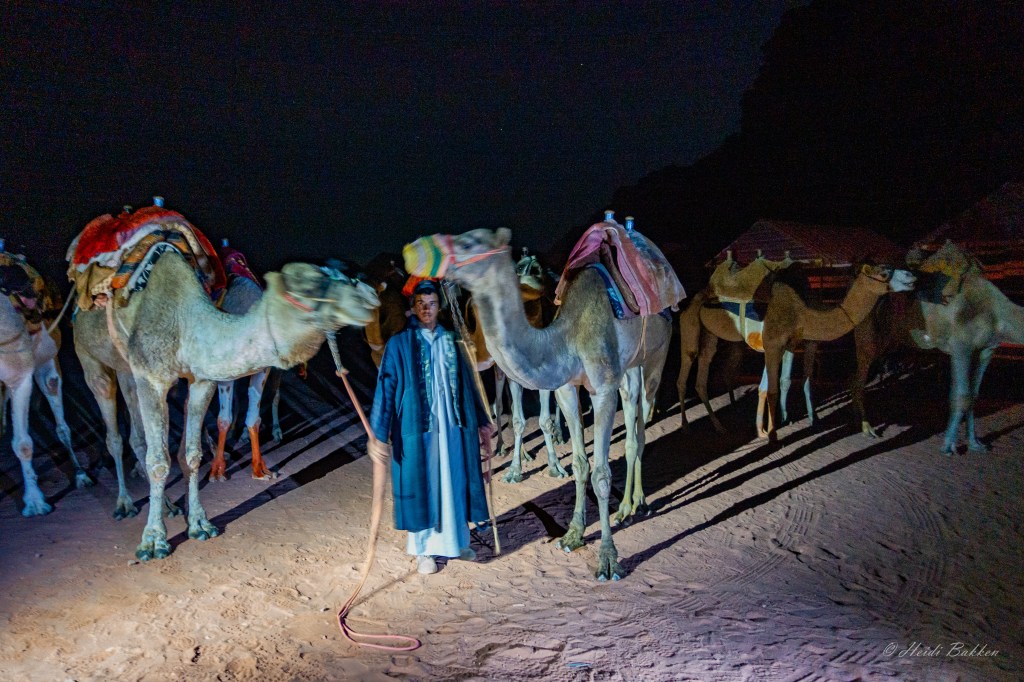Mens natten enda hang blålilla over beduinleiren hørte vi tassende føtter i sanden. Ut av mørket kom det en flokk dromedarer oss i møte.