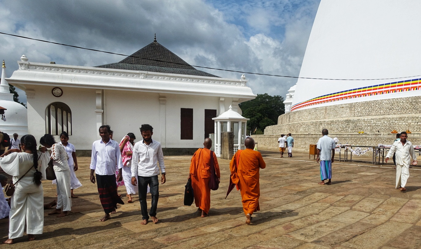 Buddhismen er allestedsnærverende her i Sri Lanka, og overveldende tilstede her i Anuradhapura. Det er stupaer (pagoder) over alt, den ene større en den andre.