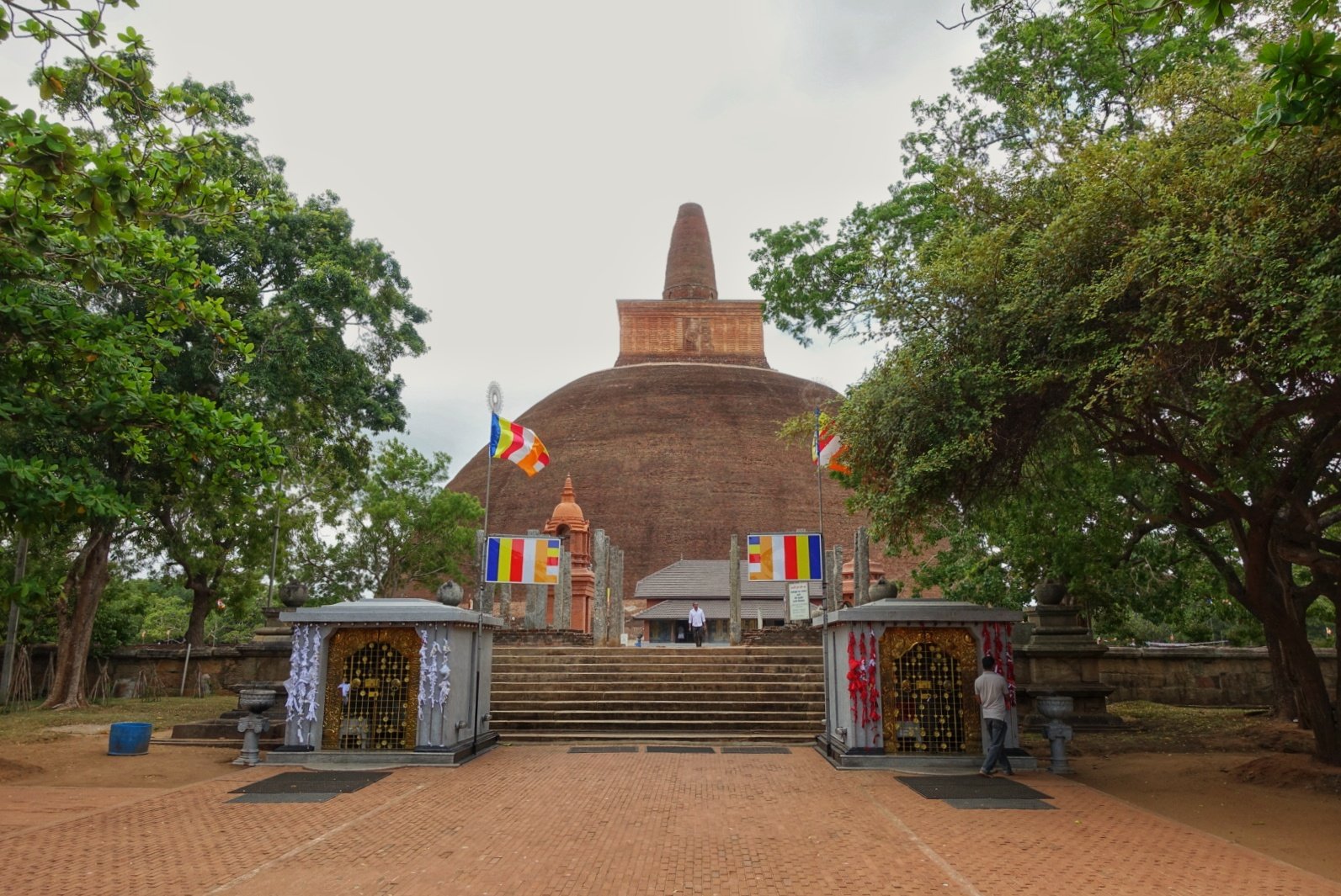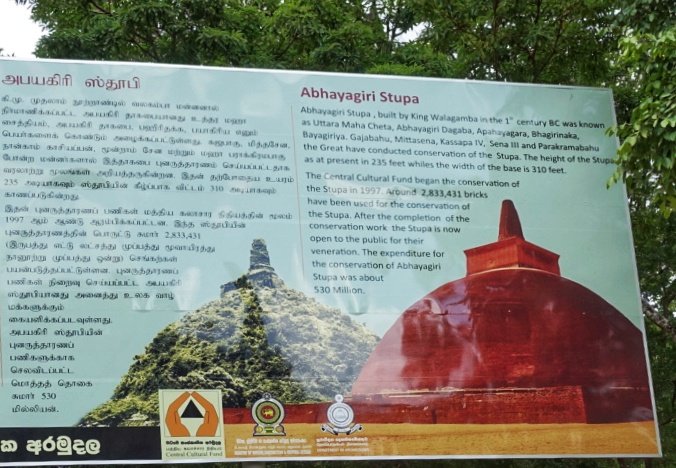 Denne historien ble jeg faktisk litt rørt over. Stupaen ble påbegynt av kong Dutugemunu, men han døde dessverre før den ble bygget ferdig. På hans dødsleie fikk imidlertid broren hans laget en falsk kuppel slik at det så ut som om den var ferdig. Denne viste han frem til sin døende bror. Kongen kunne slik dø med ro i sjela. Det er søskenkjærlighet det!