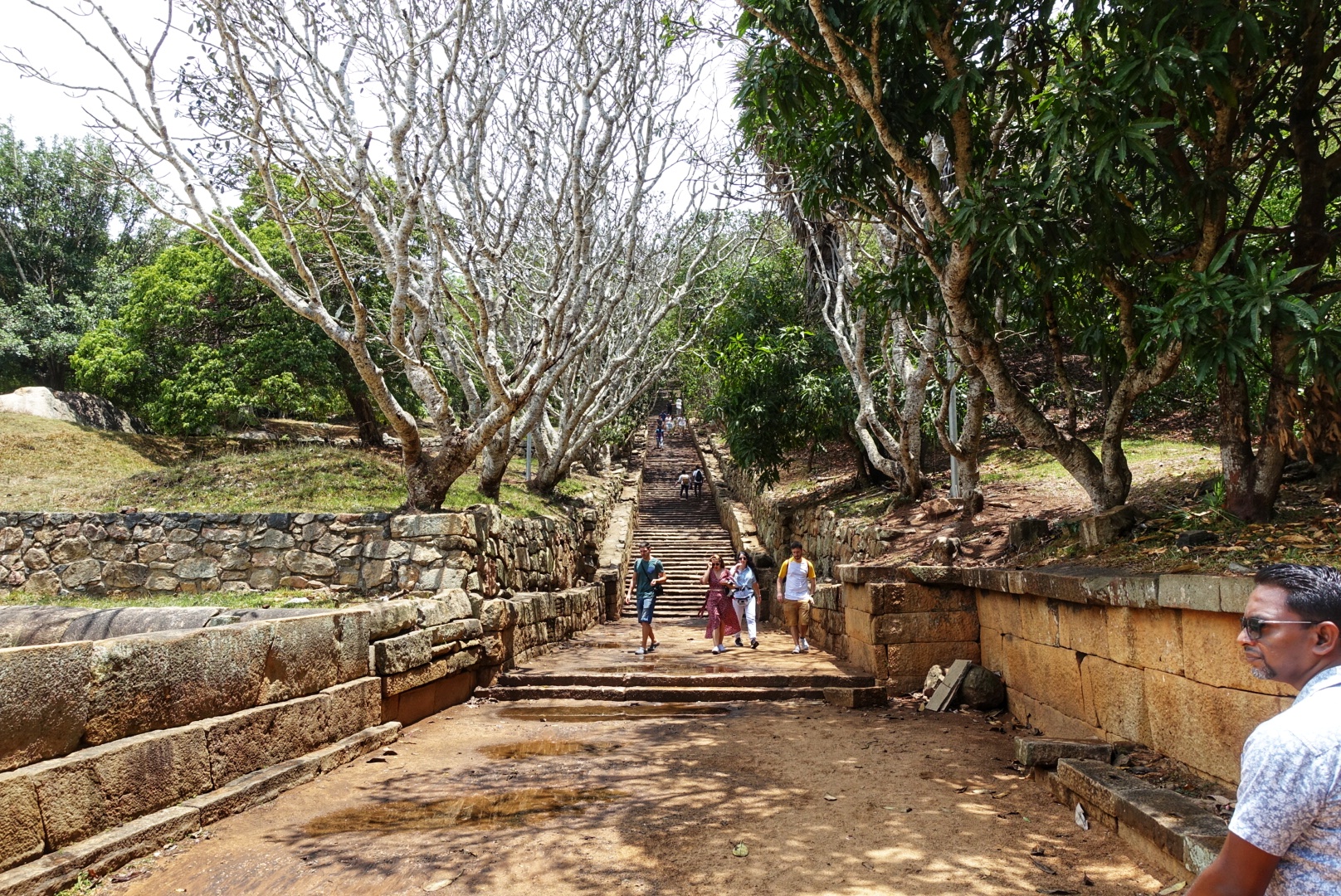 Stedet ligger på en høyde så vi må oppover igjen. Opp mange trapper. Vi holder et godt tempo. Ruvindar er stille, jeg er stille. Det er nå 33 grader og nærmere 90% luftfuktighet. Litt klamt med andre ord. Vi går på og passerer snart den ene turisten, snart den andre. Ingen av oss vil vise svakhetstegn. Senere sier han imidlertid at han tror han ikke trenger å løpe seg en tur i dag. Jeg er varm.